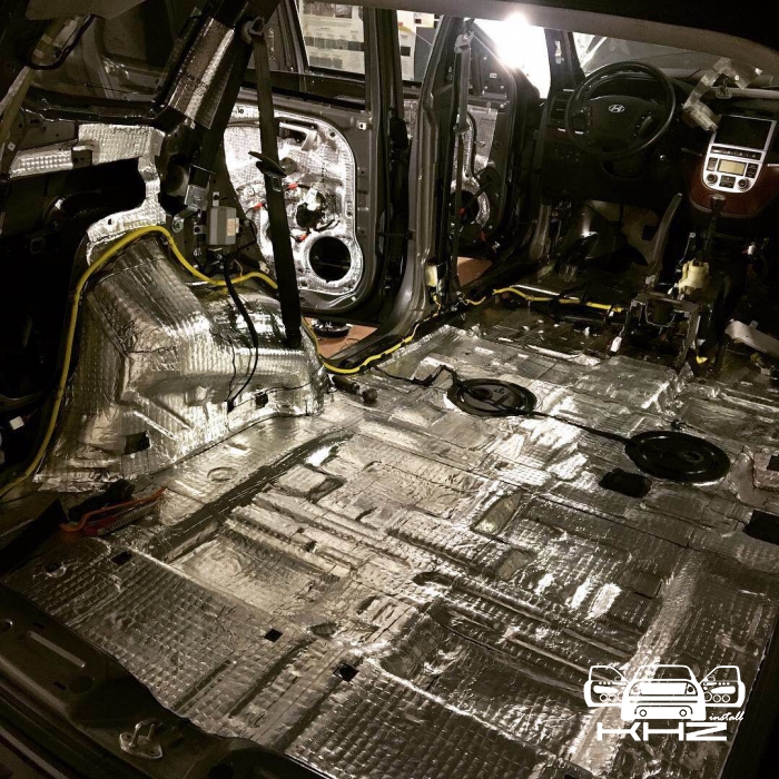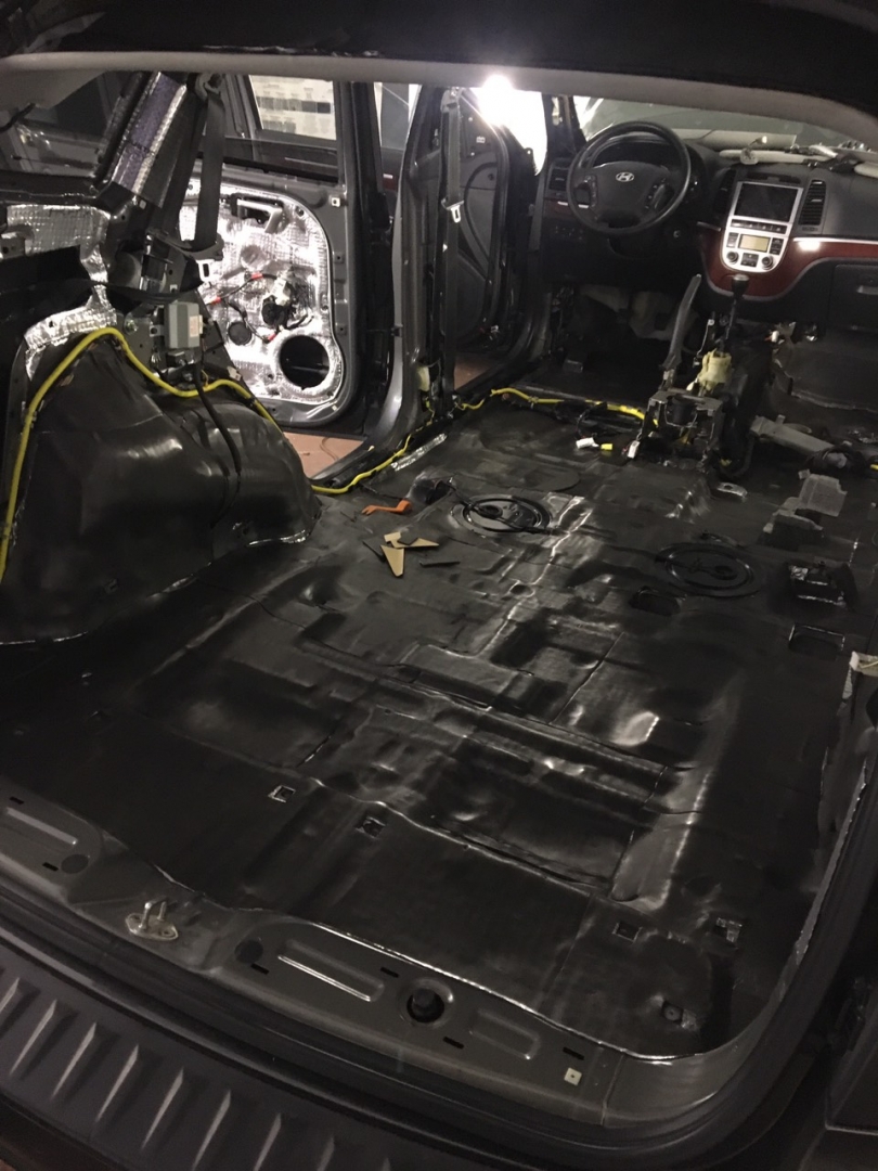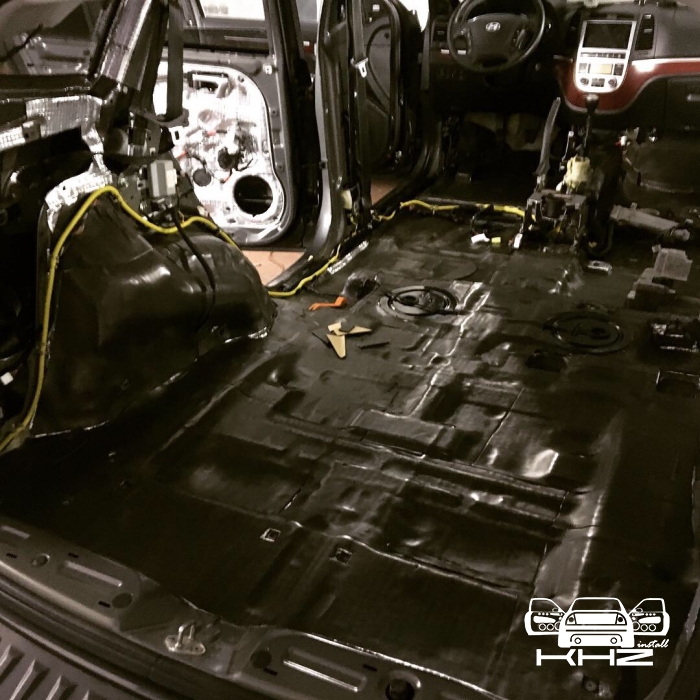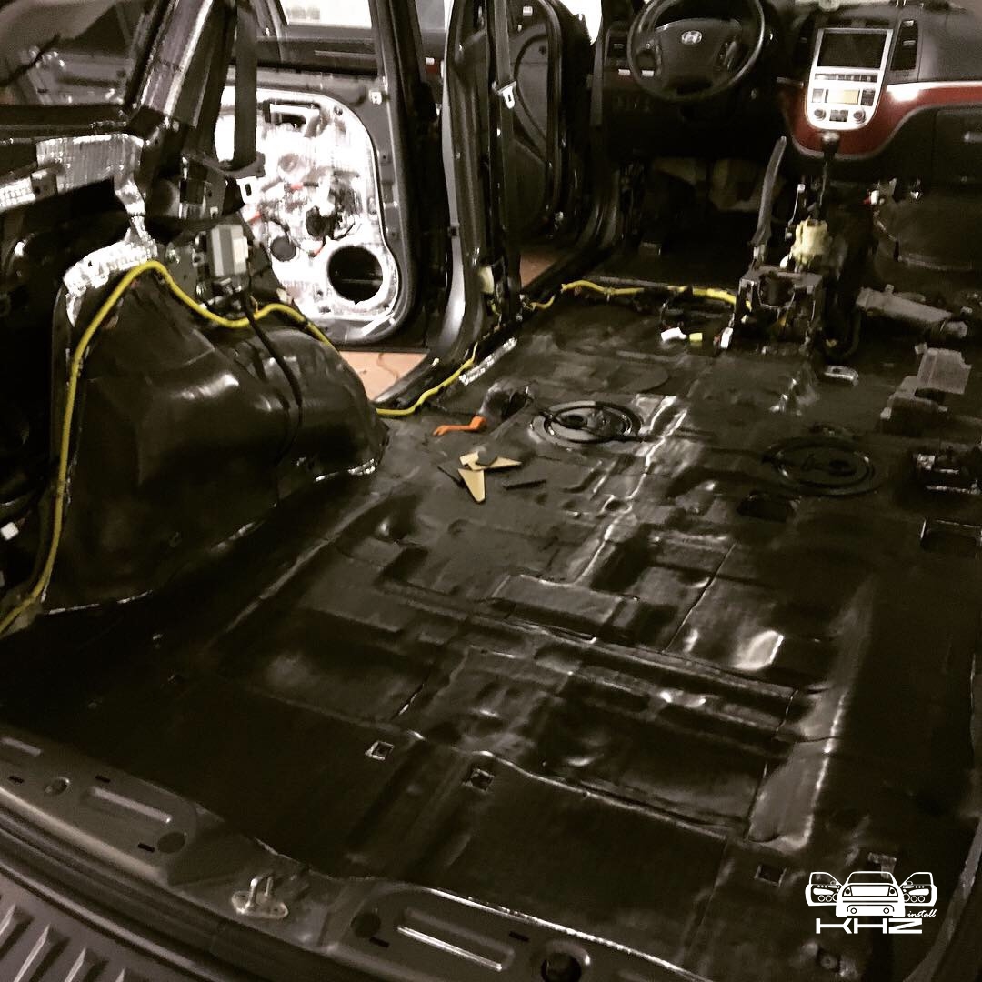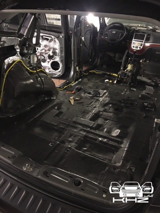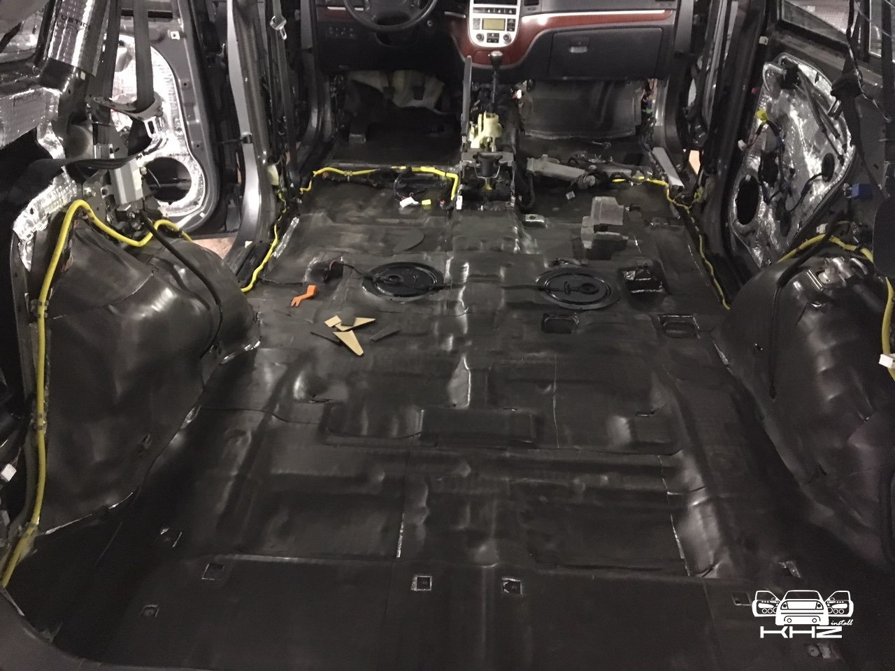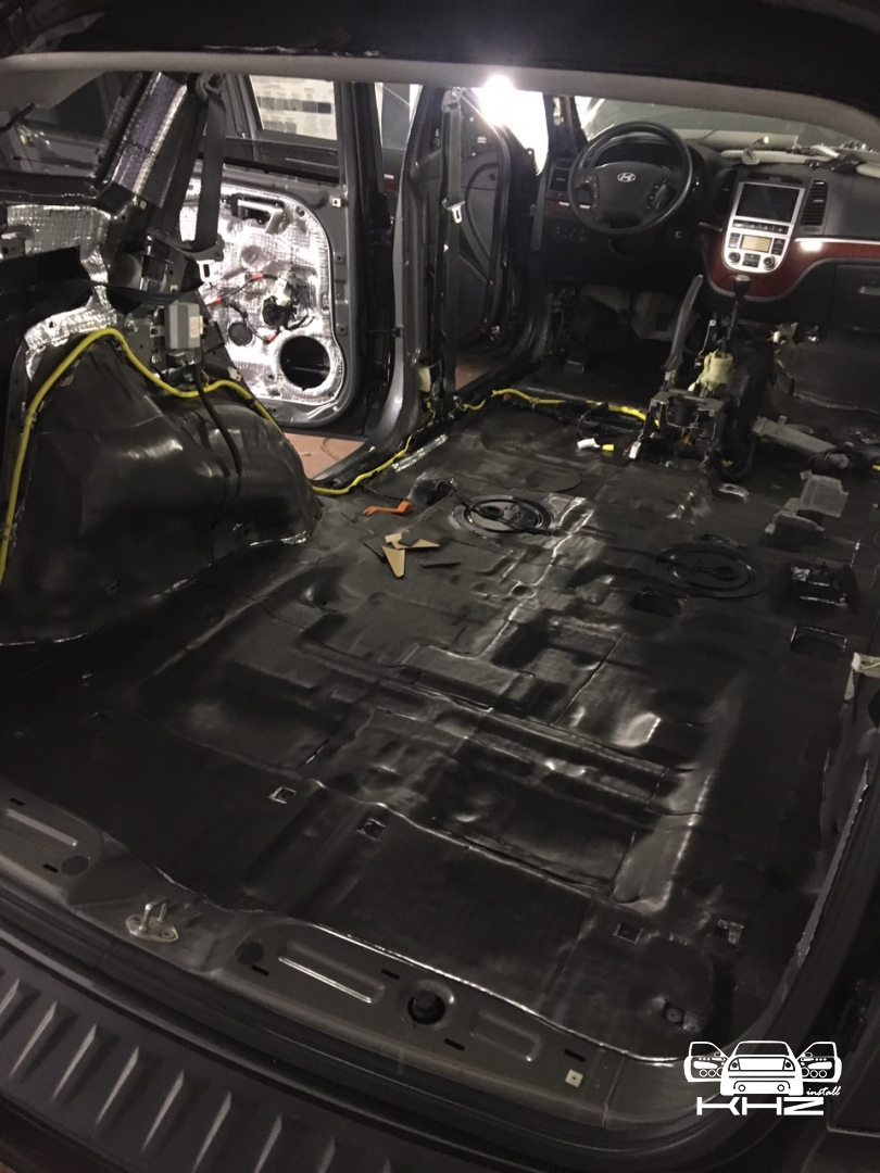 Тепер шумоізоляція підлоги і багажника Hyundai SantaFe, ці частини кузова оброблялися більш товстим матеріалом, щоб максимально прибрати шуми, віброізоляція товщиною 3.2 мм і сплен 4 мм. Було так, а стало так: