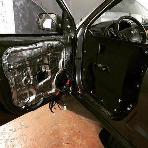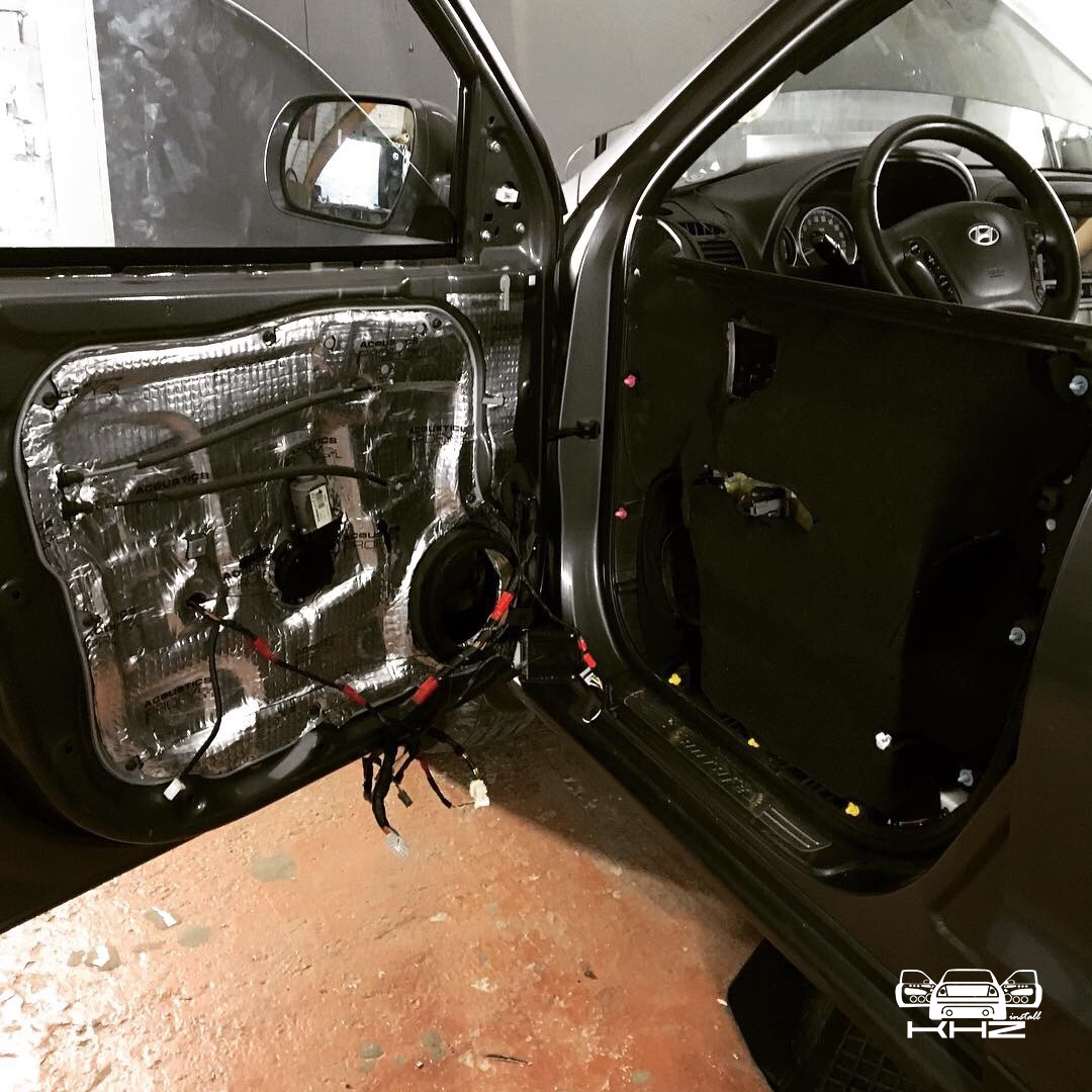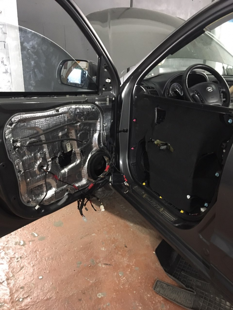 Друзі всім привіт, мова піде про цікаву роботу, я б сказав повний комплекс з повної шумоізоляції автомобіля Hyundai SantaFe, а також про комплексну акустичну систему з двома підсилювачами звуку, сабвуфером за типом стелс, установкою нової процесорної магнітоли і багато іншого. Під час прослуховування музики, яка стоїть із заводу, відчуття були огидними і звук начебто у ванній кімнаті, так само автомобіль має слабку звукоізоляцію, все це ми виправимо, весь процес нижче: