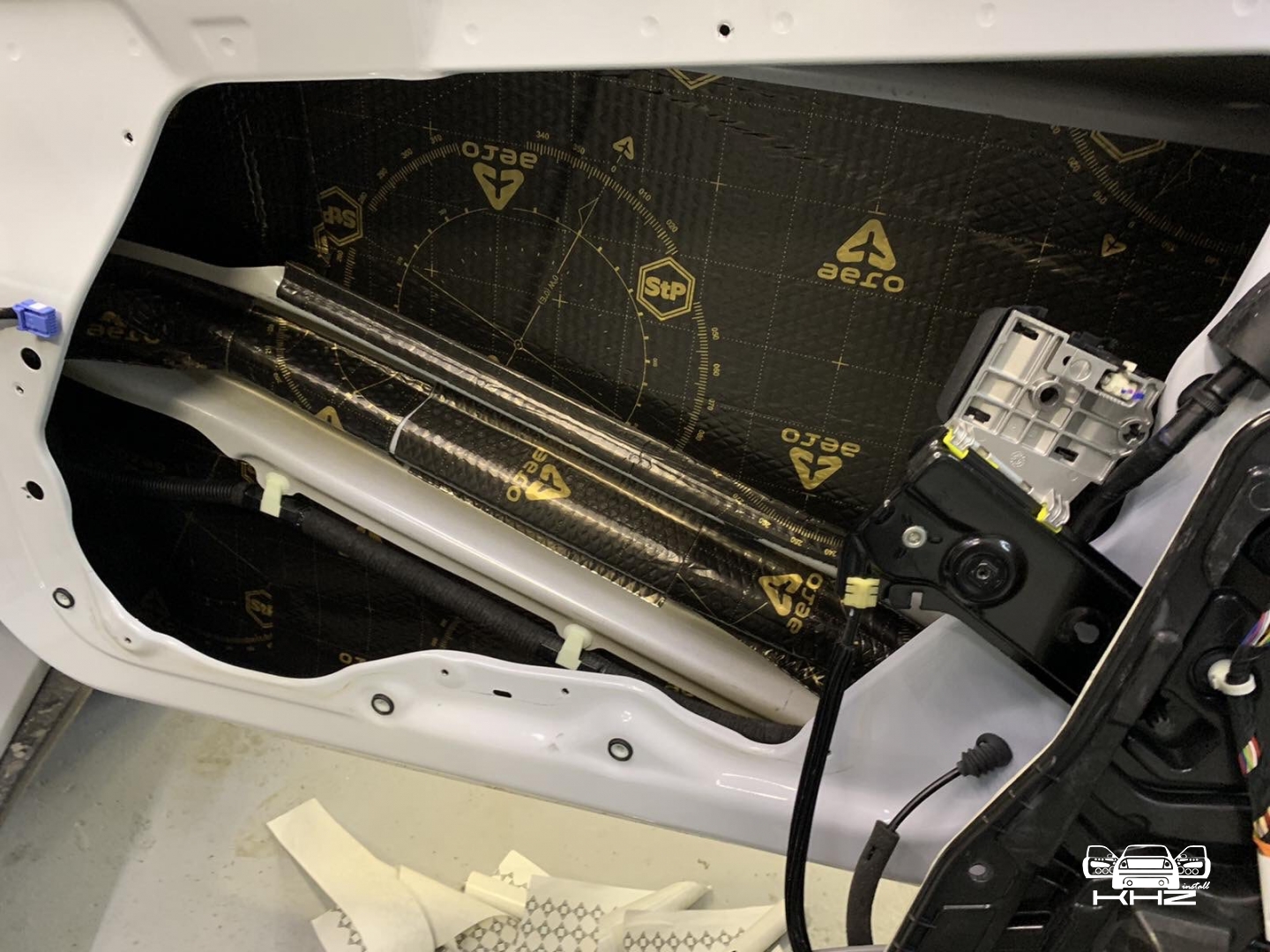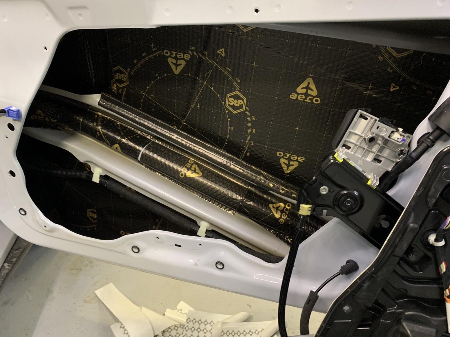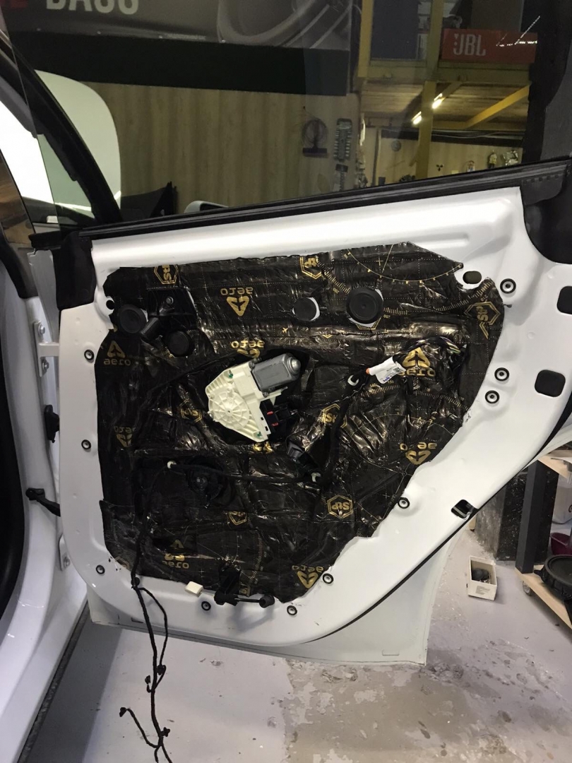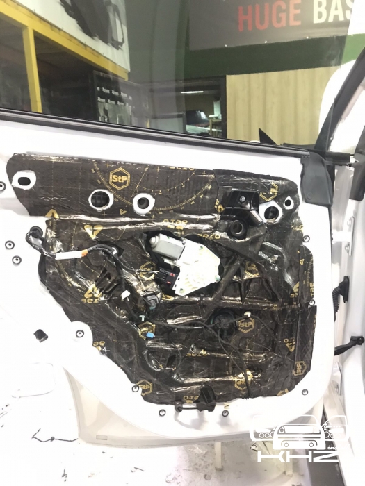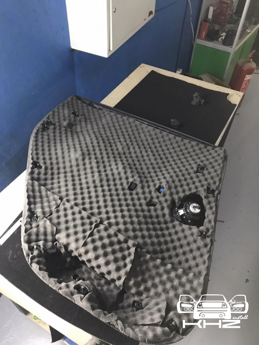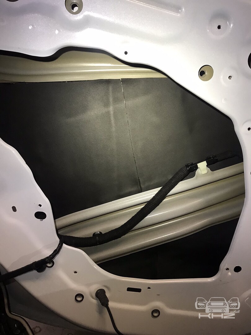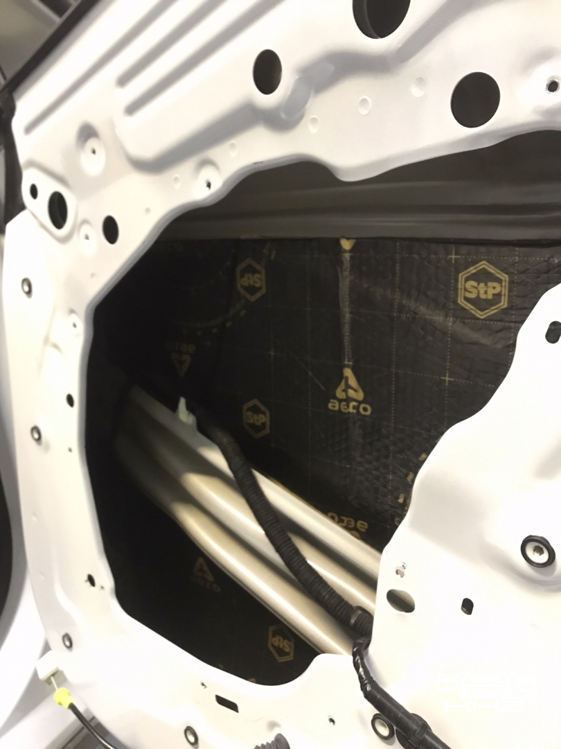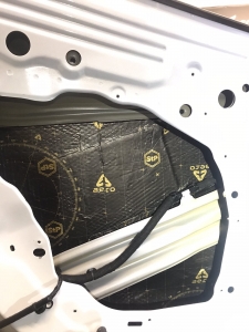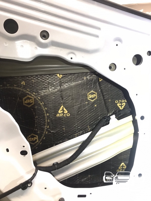 Щоб не сильно обтяжувати автомобіль, ми використовуватимемо найлегшу віброізоляцію від виробника STP AERO, двері робимо в 4 шари, як завжди, розбираємо і всередину дверей вкочуємо перший шар, укладаємо матеріал максимально, щоб покрити 90 відсотків поверхні щонайменше, потім другим шаром робимо сендвіч, вклеюємо тепло-шумоізолятор на основі спіненого каучуку. І так само виклеюємо всю поверхню - такий сендвіч із матеріалів гасить основний шум.