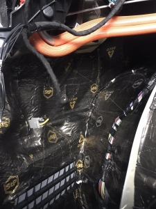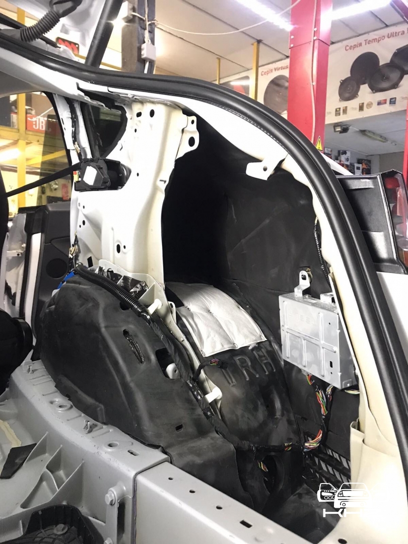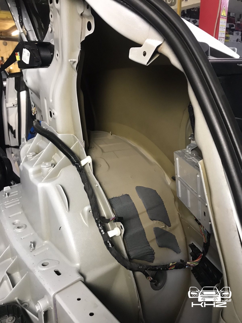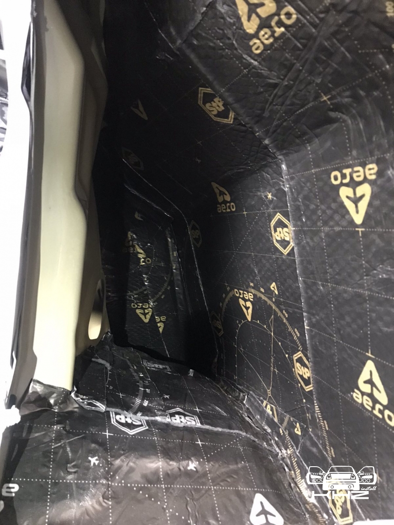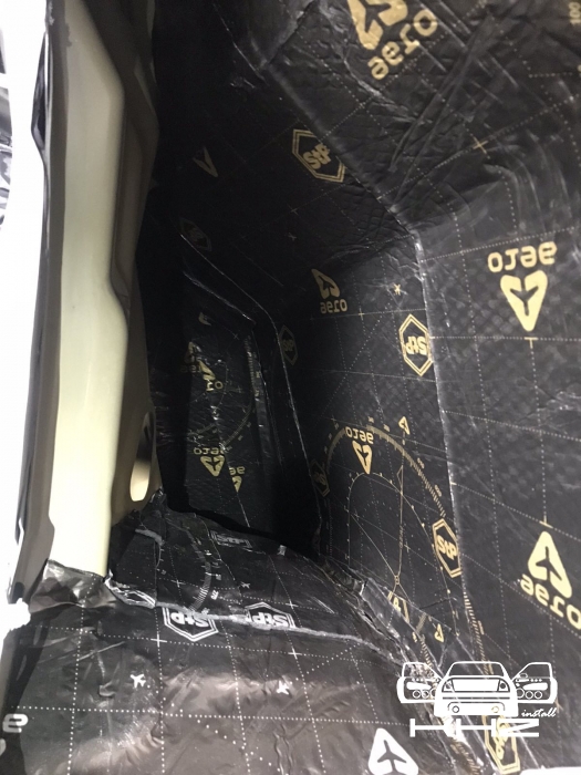 Так само у нас ще шумоізоляція багажника з внутрішніми арками, багажник по днищу і аркам робимо більш товстим матеріалом STP AERO 3 Plus. Даний матеріал має більш високий ККД і він використовується на підлогу арки і ділянки автомобіля, де максимально агресивне середовище. Ось так ми проводимо обробку багажника і арок: