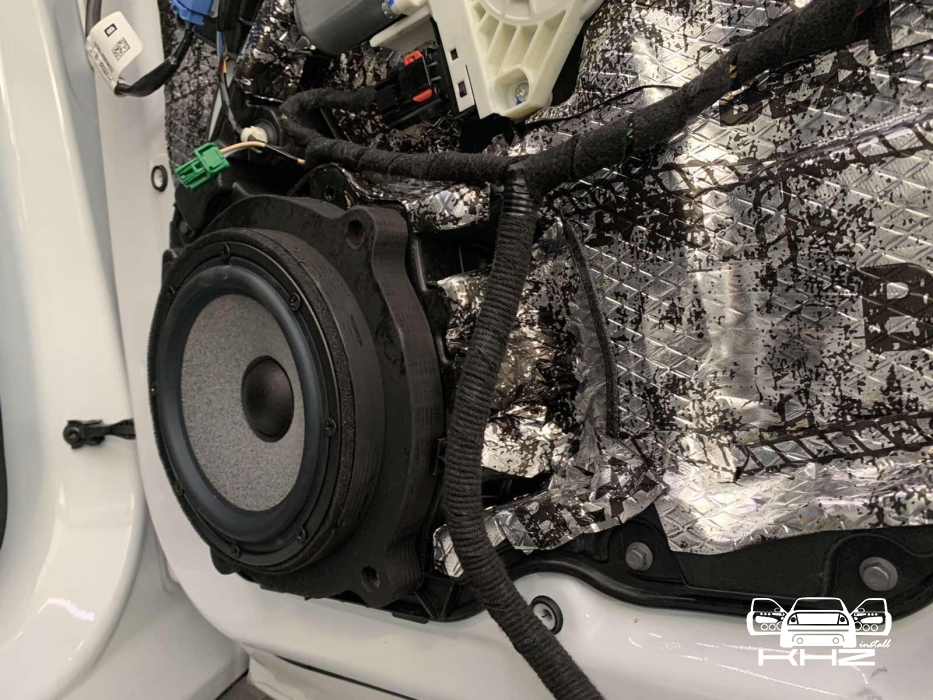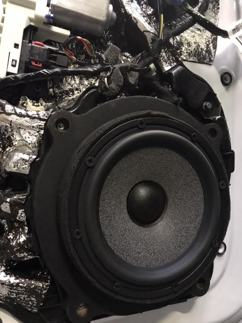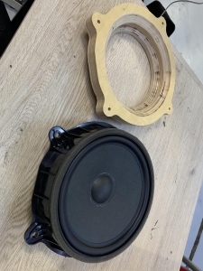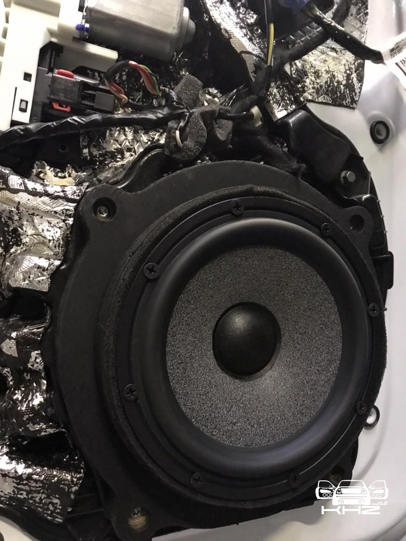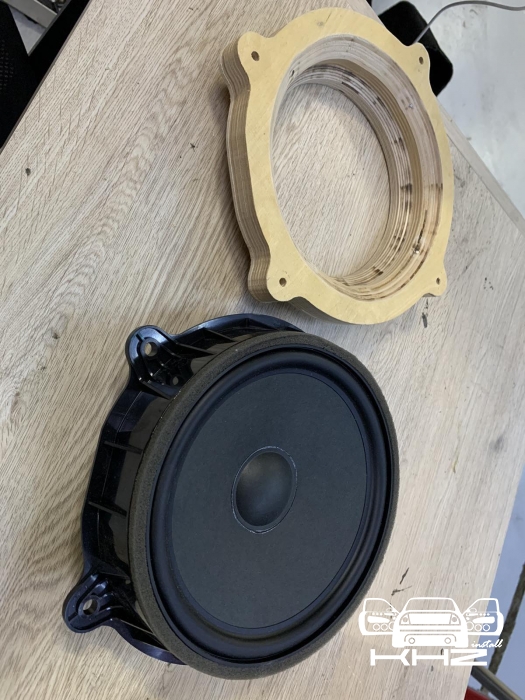 Перед тим як встановити всі динаміки, спочатку ми протягнули нову акустичну проводку - мідну хорошу, з правильним перерізом, для гарної передачі сигналу. Для встановлення мідбасів ми виготовили проставочні кільця з фанери, двокомпонентні, пофарбували в чорний колір і закріпили добре в штатних місцях, далі акустику BRAX Graphic GL 6 встановили через проставочні кільця в свої місця, дані мідбаси дуже круто тримають потужність і дуже низько забираються, ідеальні для побудови SQ систем. Встановлено їх ось так: