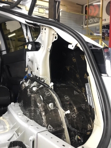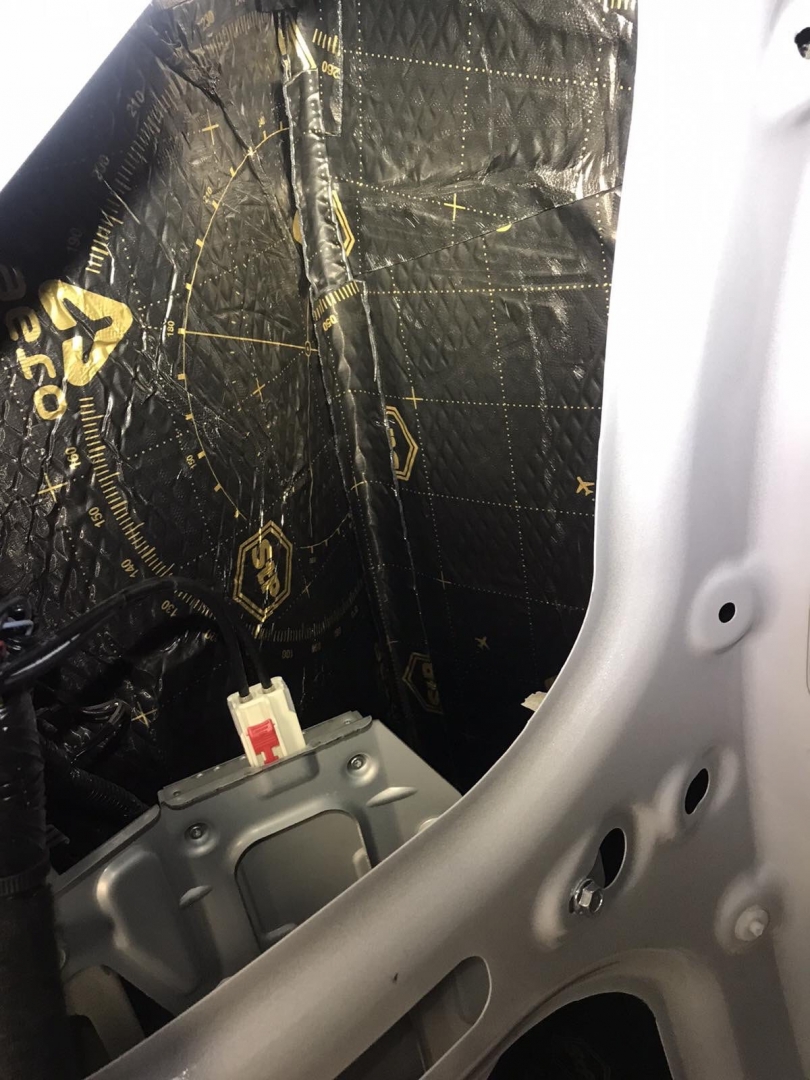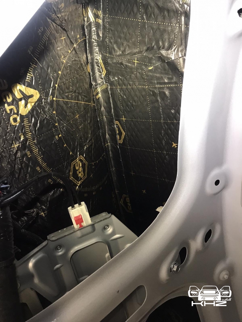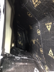 Боковини так само виклеюємо, але таким самим матеріалом, як і двері, робимо все добре без пропусків, другим етапом ми всю площу, яку обклеїли віброізоляцією, так само виклеюємо тепло-шумоізолятором, це найнадійніша комбінація в боротьбі зі сторонніми шумами.