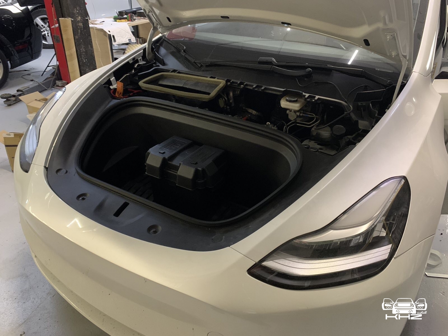 Так само ми встановили додатковий акумулятор, так як той, що зроблений для додаткового обладнання, дуже маленької ємності, і він буде перевантажений - дооснащенням другим, розв'яже можливості, під капотом у ніші ми встановили спеціальний бокс, який закріпили до ніші, встановили AGM акумулятор, який з'єднали з основним, якісними проводами Tchernov cables.