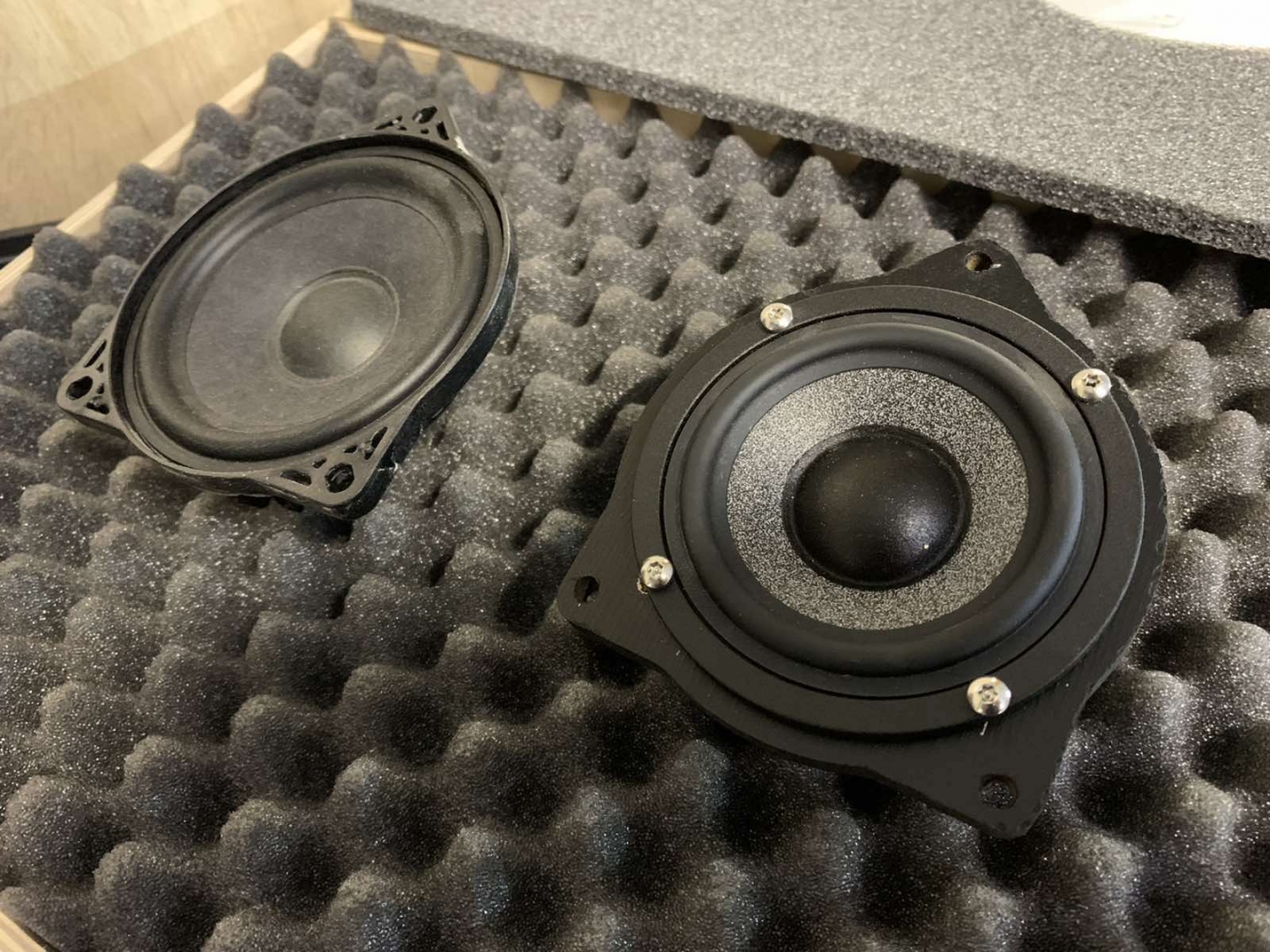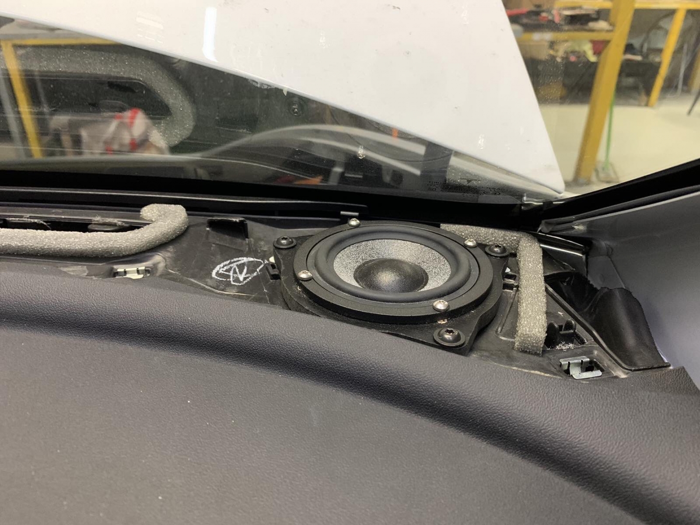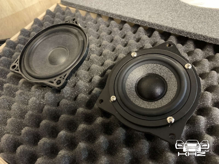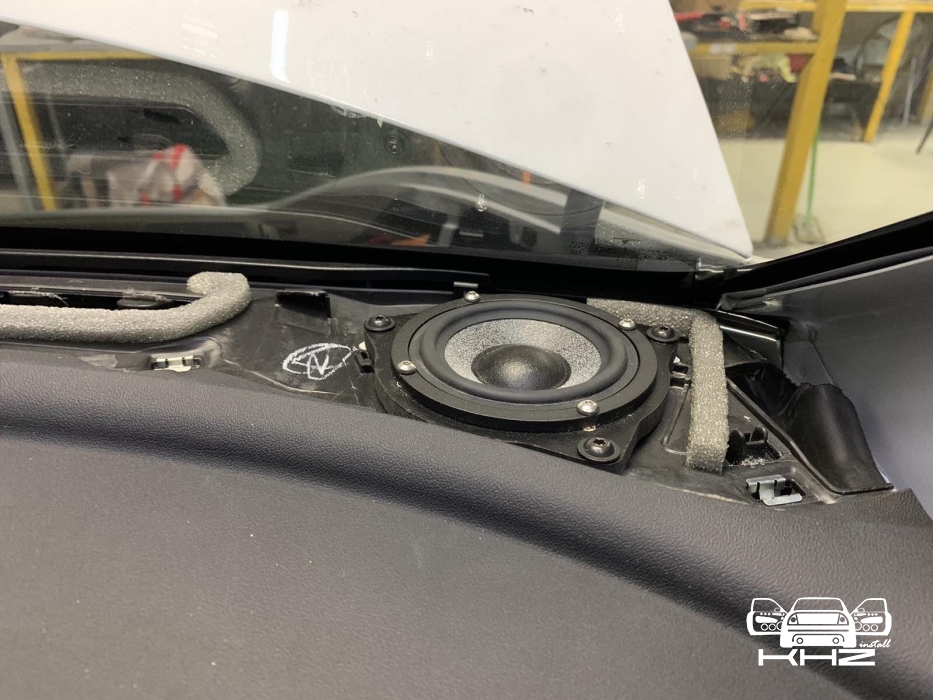 Далі йдемо і наступні у нас для встановлення - це середньочастотники СЧ динаміки, це дуже важлива ланка в побудові хорошого фронту, якщо на них не сильно звернути увагу - буде очевидний провал у частотному діапазоні. Тому ми взяли так само перевірений варіант, серединки від BRAX Graphic GL 3, шикарні серединки з м'яким підвісом і дуже соковитим звуком, який під склом буде розсіюватися і створювати максимально широку і об'ємну сцену звуку. Встановили середньочастотники ми в торпедо, під лобовим склом, виглядає це так: