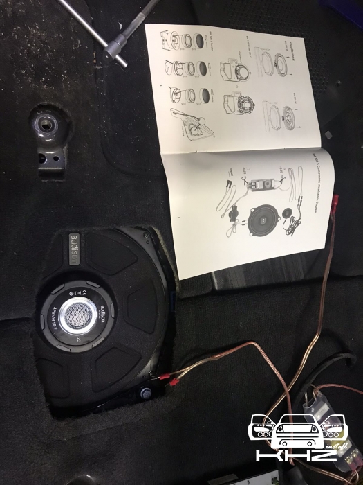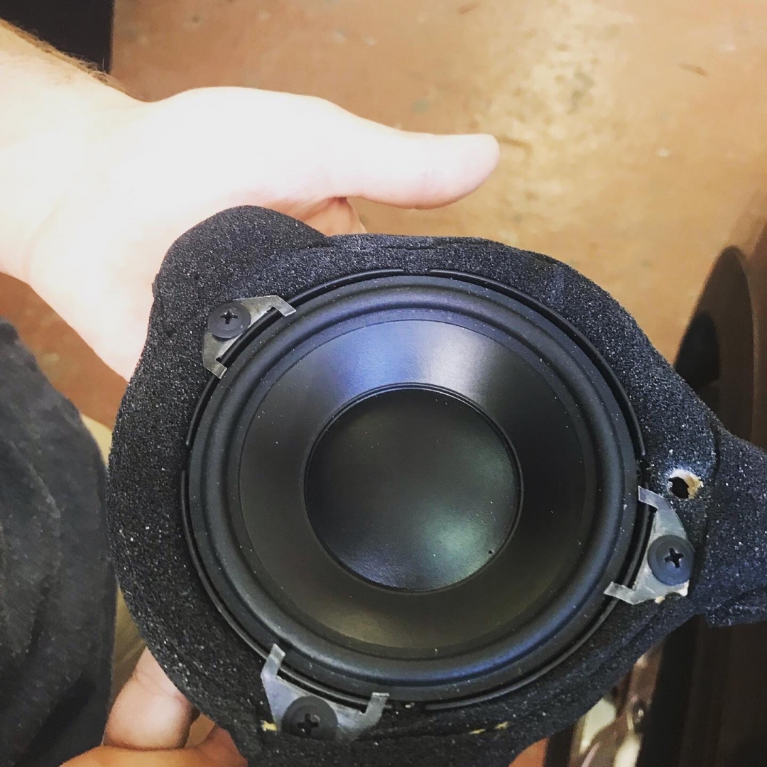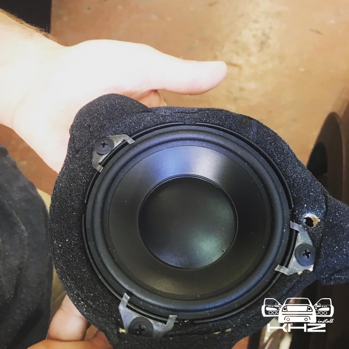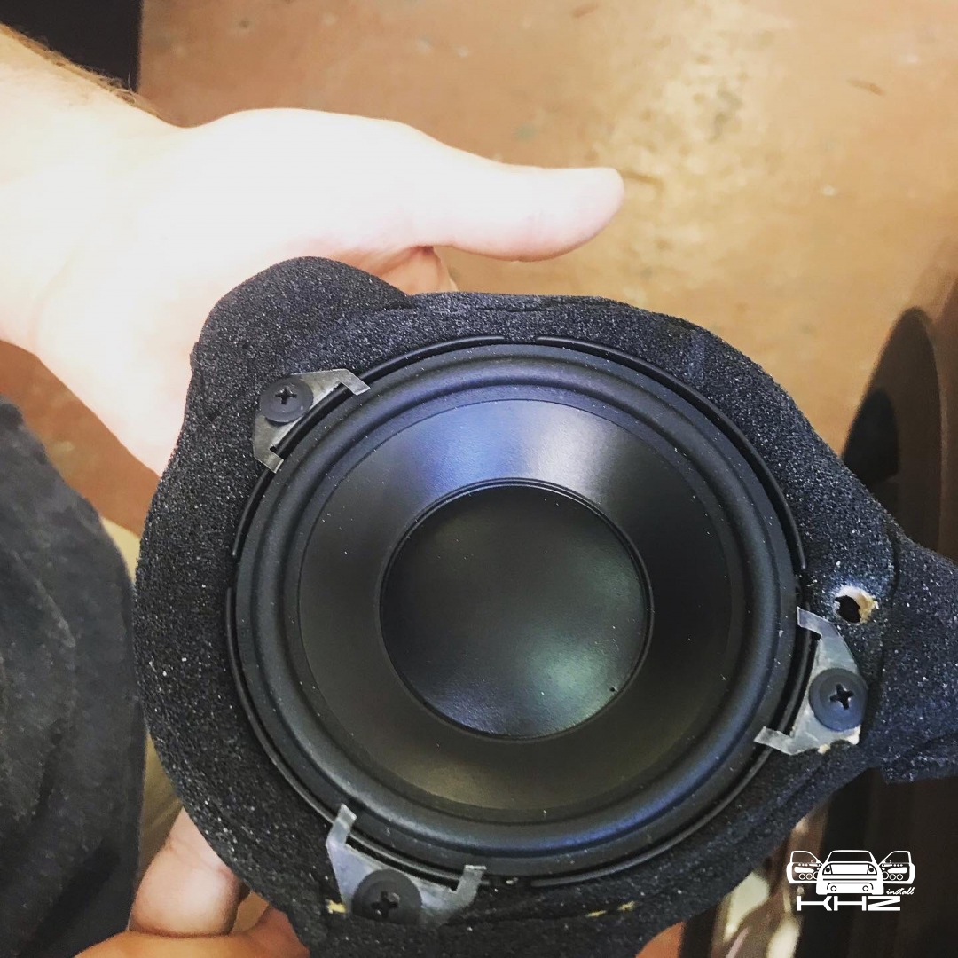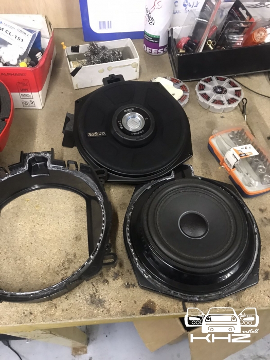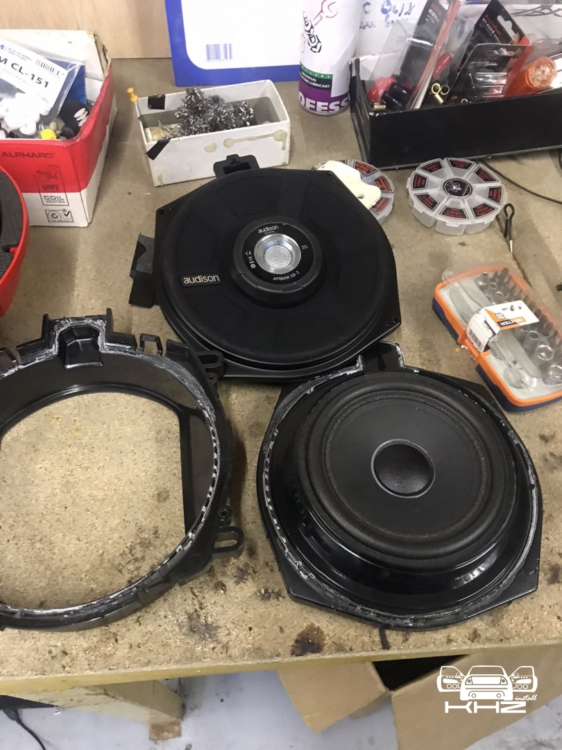 Рухаємось далі і наступний процес заміна акустики, річ у тім що до цього наш замовник поїхав вже в інше місце на встановлення акутики, і там власне вже щось зробили що йому не сподобалось і він згадав про нас, з того ми почали переробляти, зняли віброізоляцію з дверцят, яку туди поклеїли марки Візол по 45 грн за лист, зняли її двома рухами, і переробили проставку під акустику, вона була зі шматка пластику, і динамік закріплений тільки на скоби, ми зробили з фанери, і скоби закріпили, акукстіка була підібрана вже до нас, і впринципі вона дуже хороша бренд Morel, лінійка Morel Ovation 5.