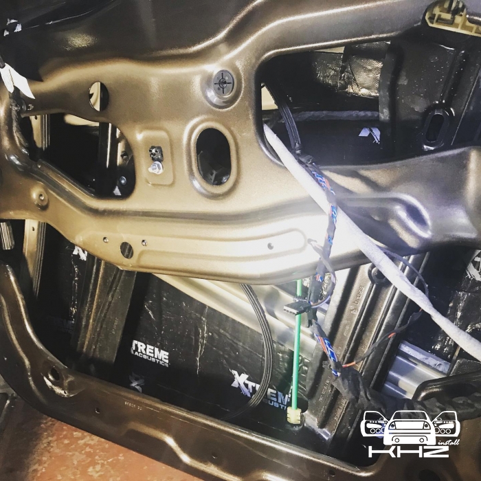 Почнемо з шумоізоляції дверей передніх тільки, так як це в більшій мірі служило як акустична підготовка дверей. Матеріали використовували бренду Acoustics серії XTREME, вони полегшені і добре поглинають шум. Двері, як завжди, обробили в 4 шари, два шари віброізоляції, шар тепло-шумоізолятора і м'який антискрип. Це готово.