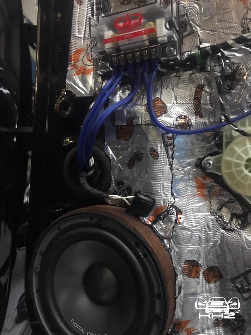 Акустика була обрана бренду DD Audio на фронт високої лінійки і на тил трохи простіше, акустика досить потужна і високої якості, фронт акустика вся була нами зроблена на хороших дорогих роз'ємах, твітер був встановлений в рідне місце і підключений на пряму до підсилювача звуку з процесором.