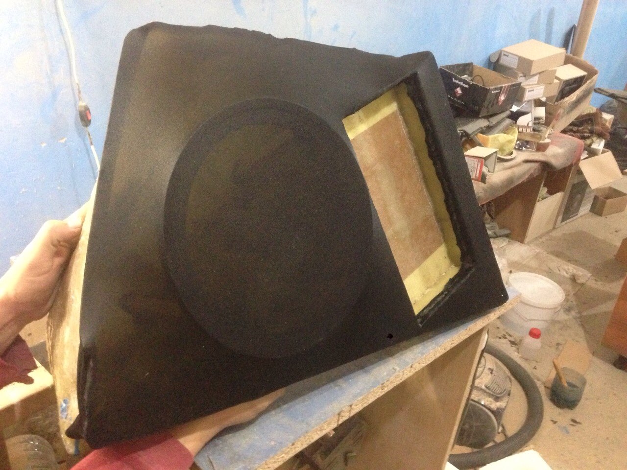 Тепер звернемо увагу все таки на головного гостя програми, а саме на сабвуфер стелс з вбудованим підсилювачем! Всі процеси його виготовлення показувати довго і ви їх вже скоріше за все бачили в наших попередніх роботах, тому коротко: Було так: