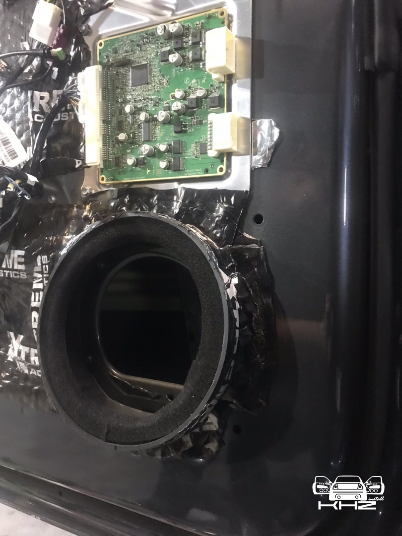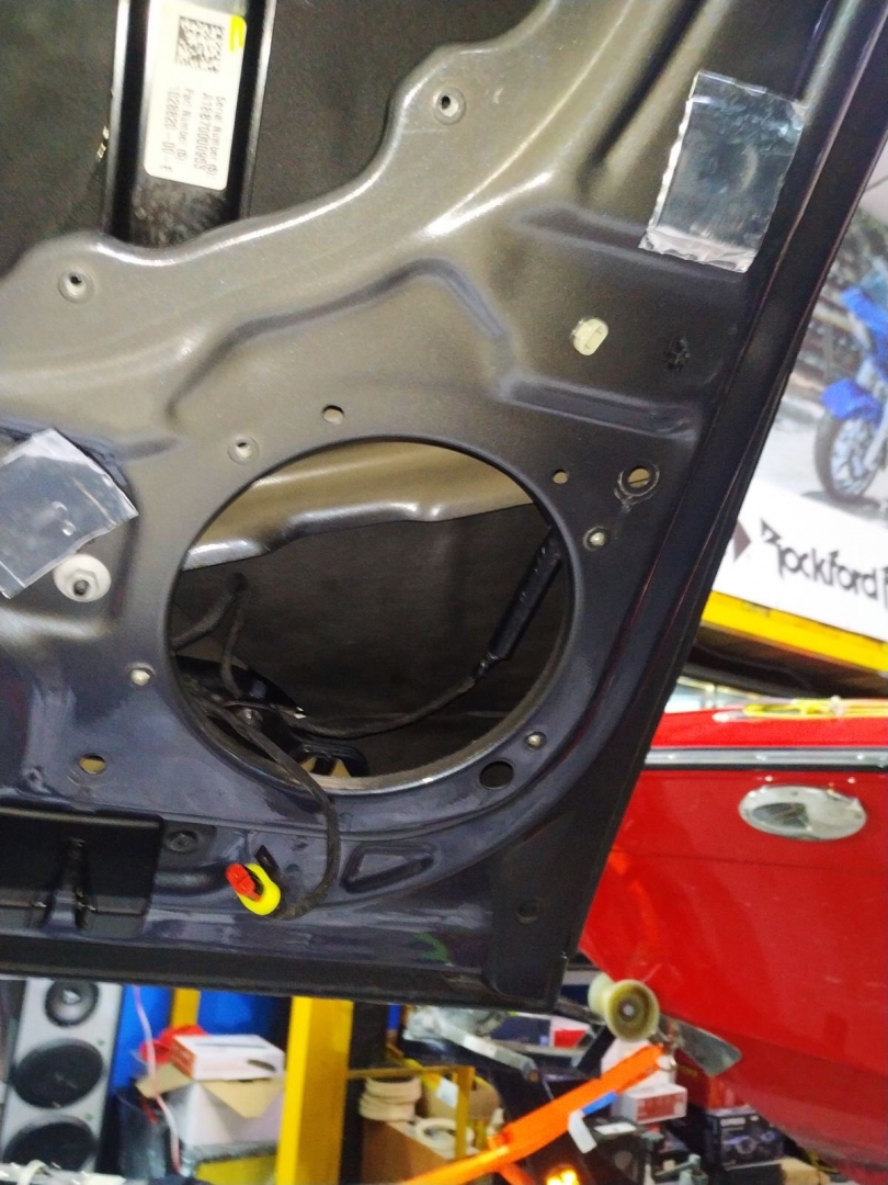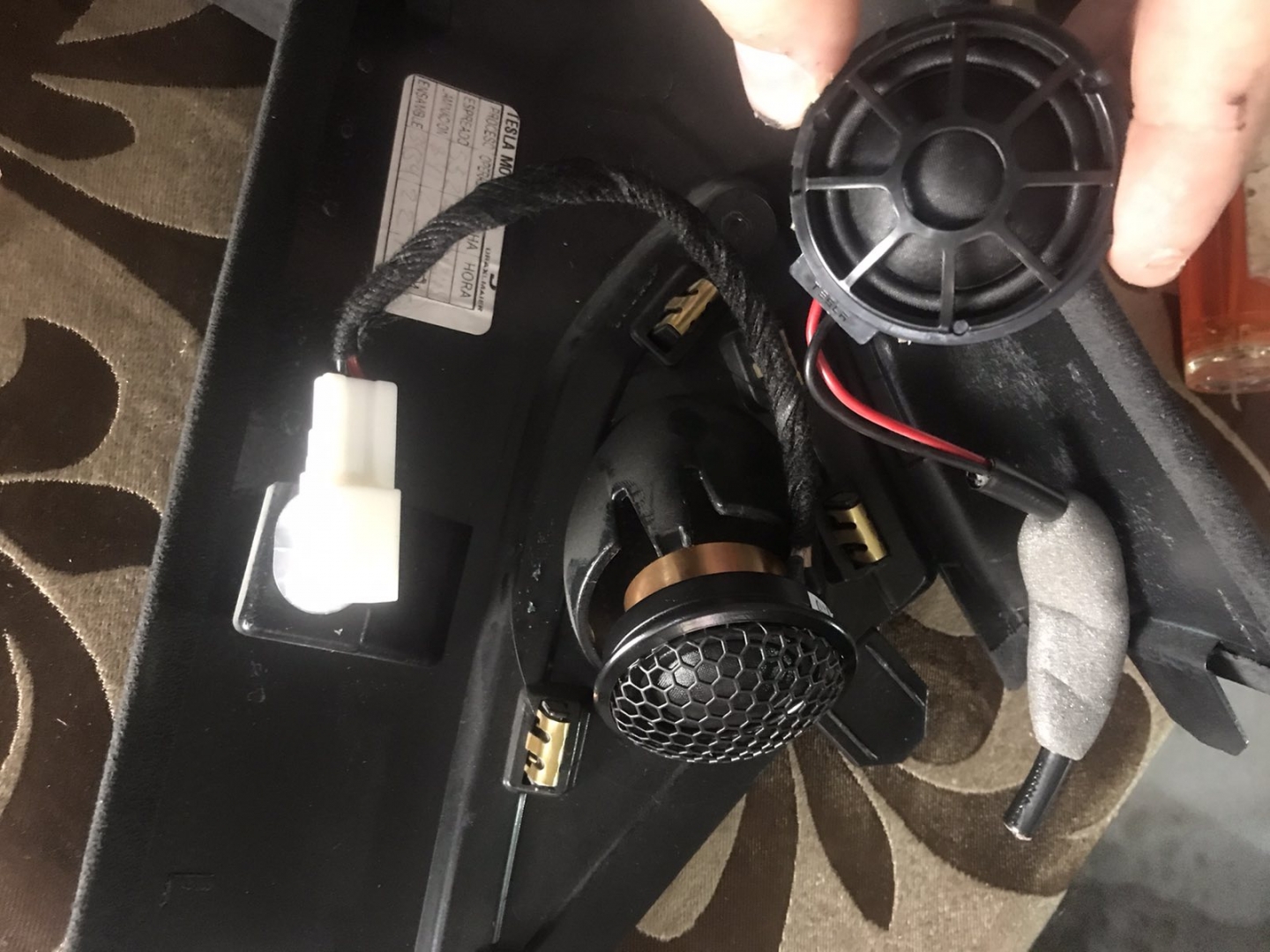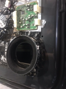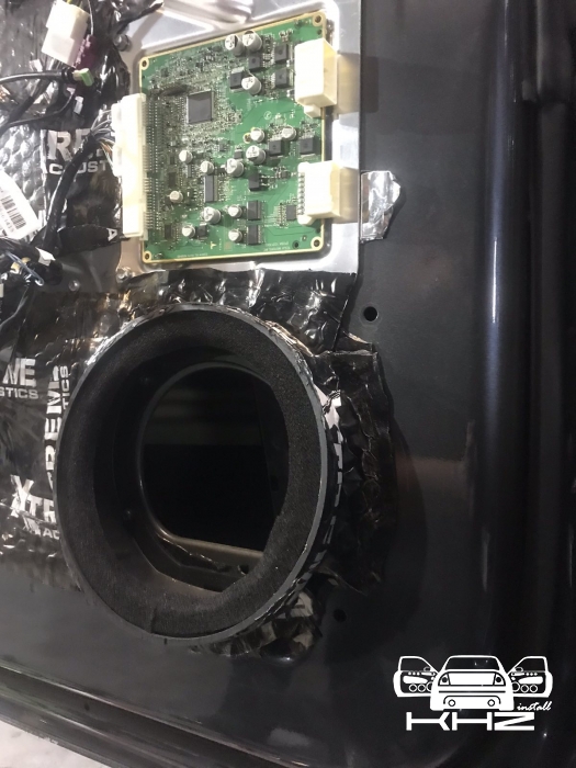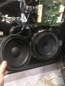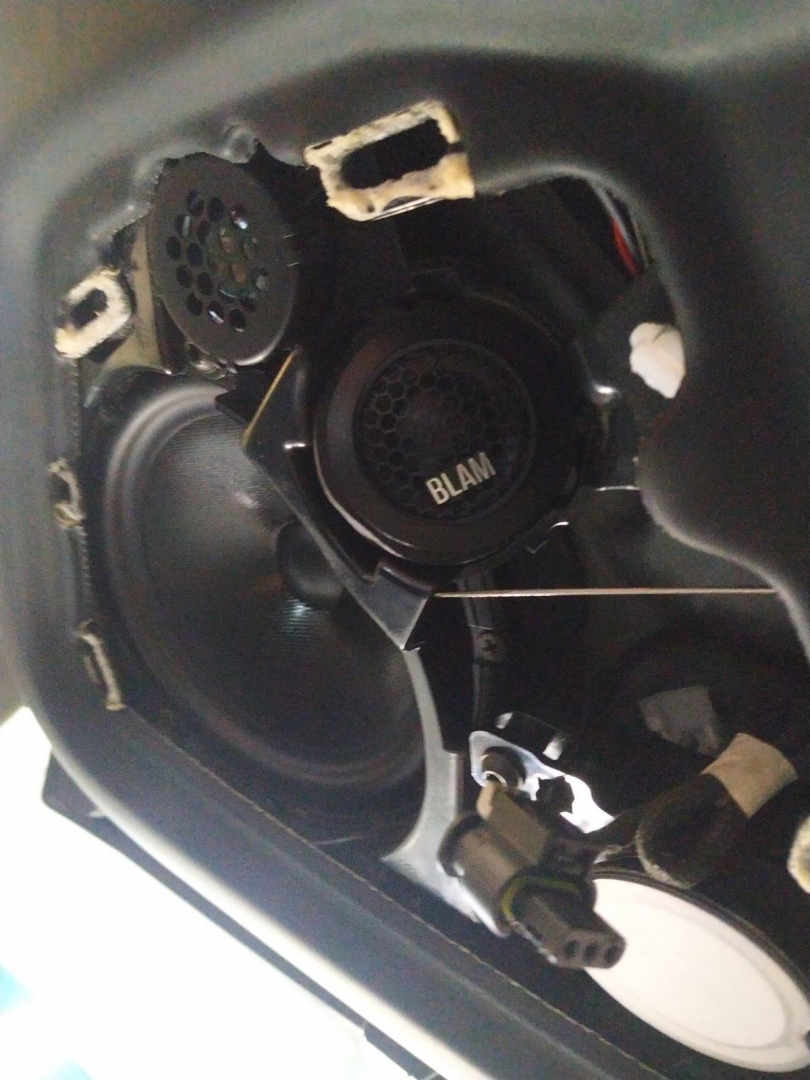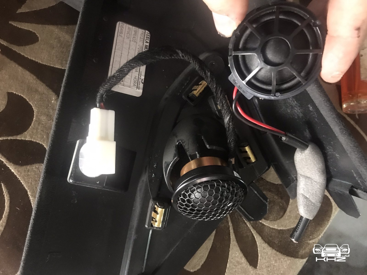 Йдемо далі і наступна ланка до заміни - це задня акустика в дверях, там стоїть штатна компонентна з не стандартним опором так само, ми підібрали акустику так би мовити для підзвучки і з таким самим опором, щоб результат був кращим і детальнішим, єдиний мінус - це те, що сигнал там теж не повноцінний і обрізаний по низах частково, але після встановлення комплекту акустики, стало грати чистіше і могутніше, але без низів, які ми компенсуватимемо за допомогою сабвуфера і передніх мідбасів. Акустика в дверях чайки була встановлена французького бренду BLAM комплект, який добре грає без підсилювача звуку від магнітоли, став він через проставочное кільце і в штатні місця, разом з твитером.