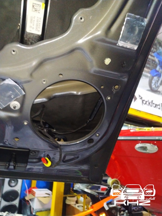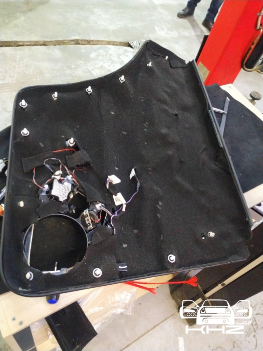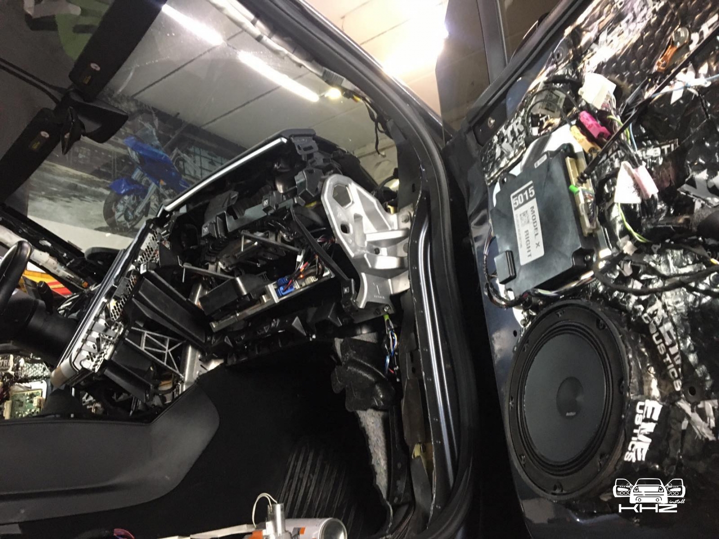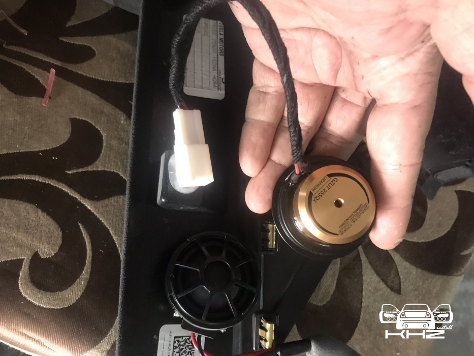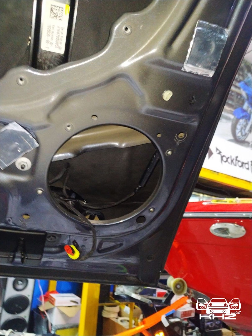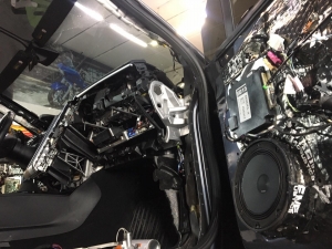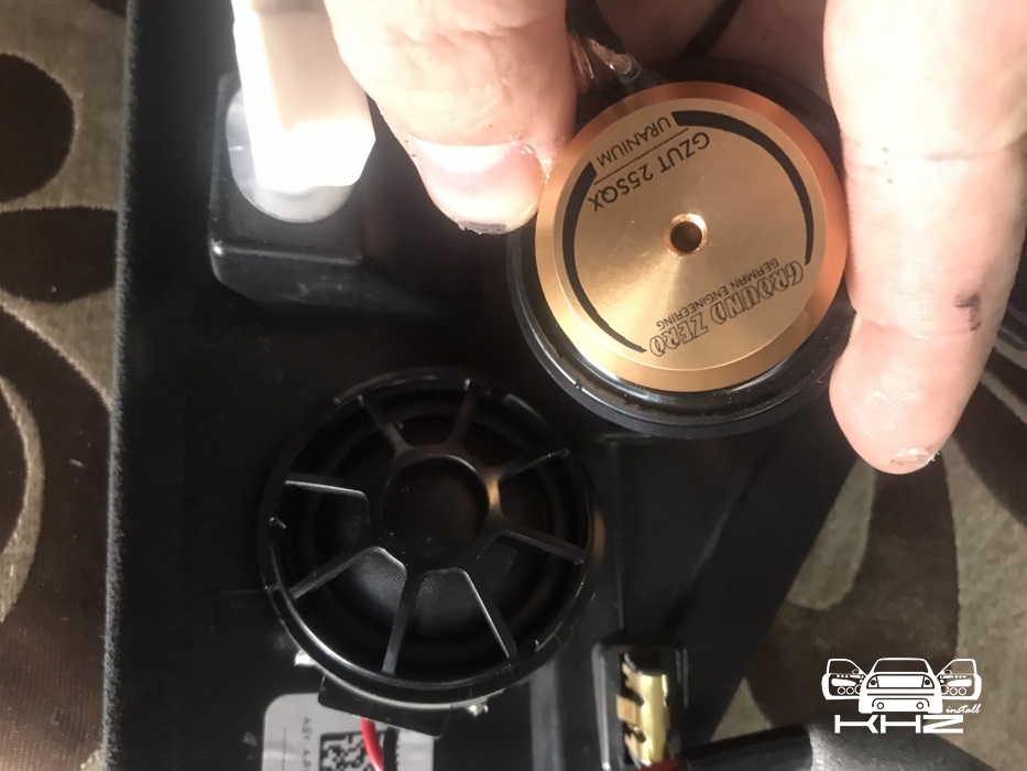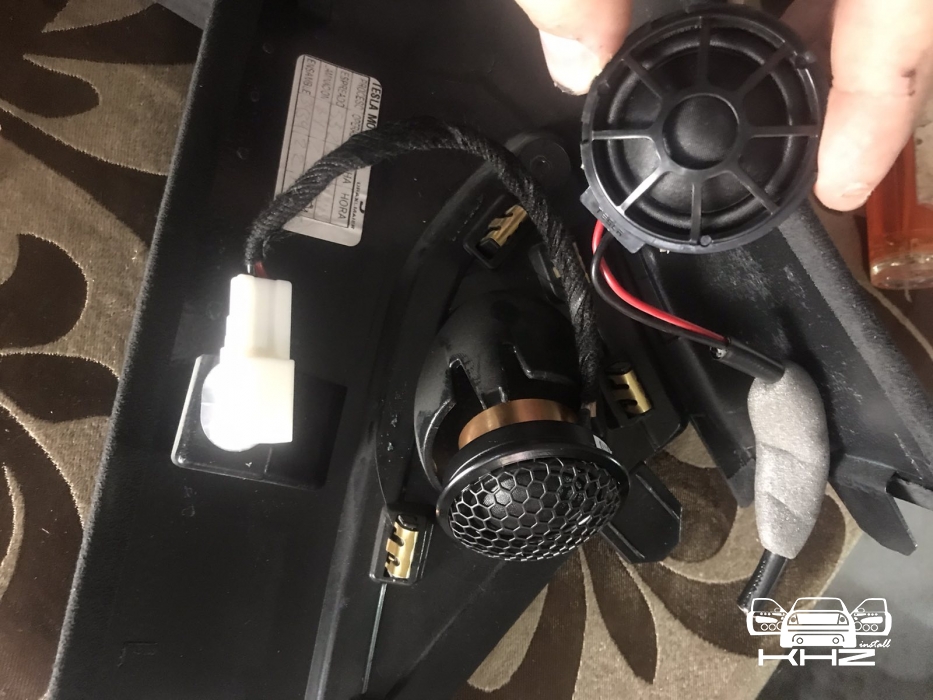 Так само були розібрані стійки, в них стояли заводські твітера, ми їх замінили на нові бренду Ground Zero хорошої лінійки, так би мовити, перевірений варіант для хорошого звуку, під'єднали їх до штатної проводки, на якій магнітола задає зріз динамікам, динаміки стали в штатні місця, їх було закріплено та під'єднано через заводські роз'єми.