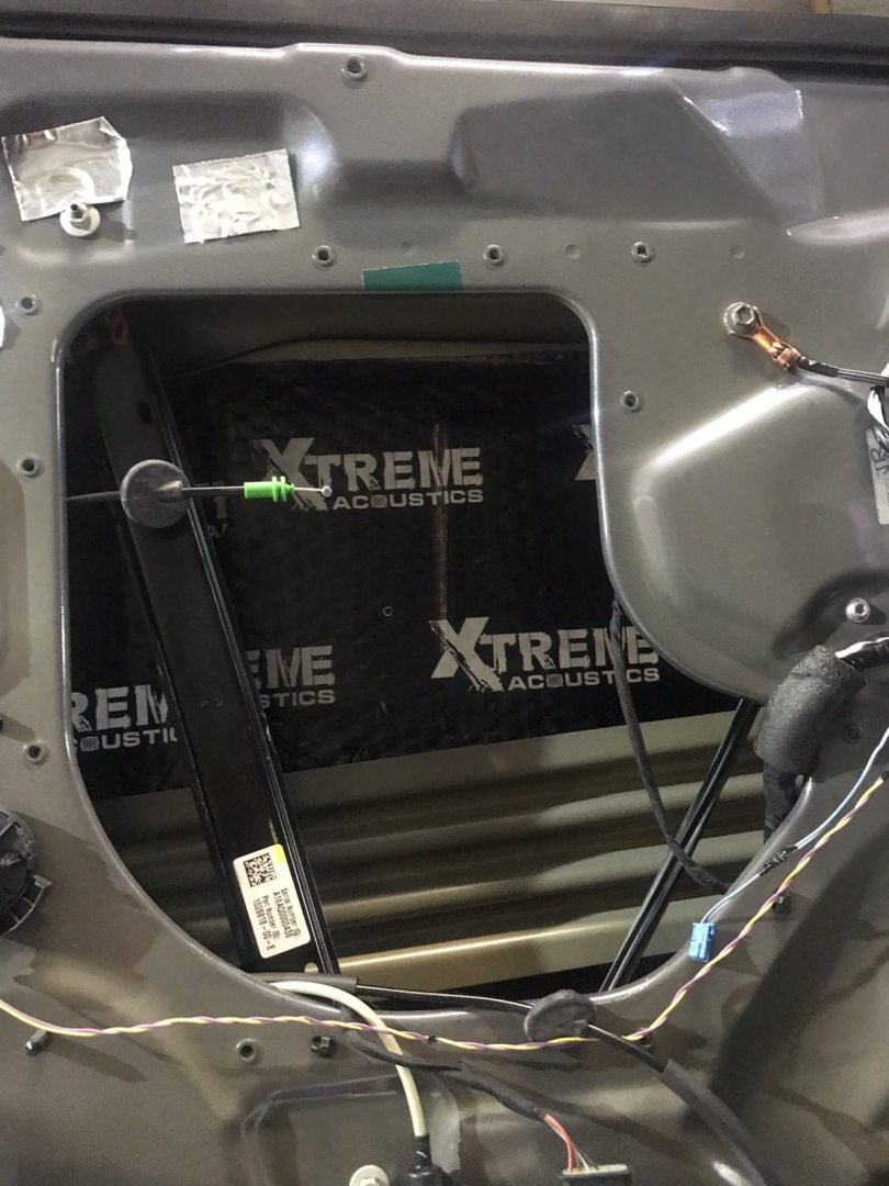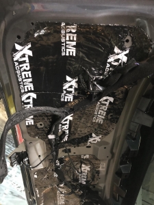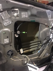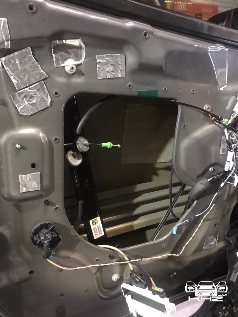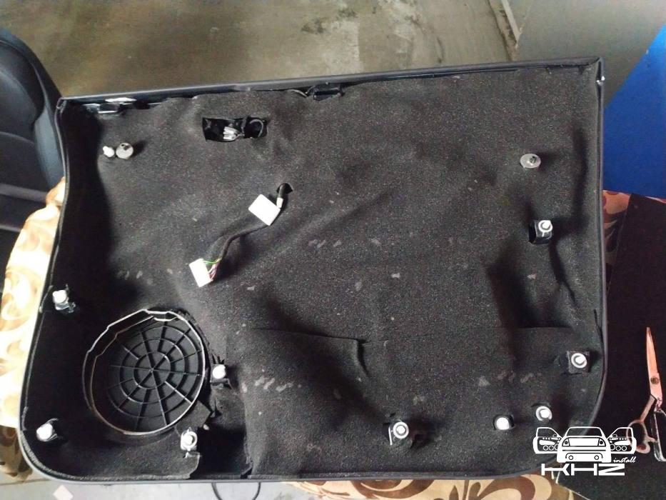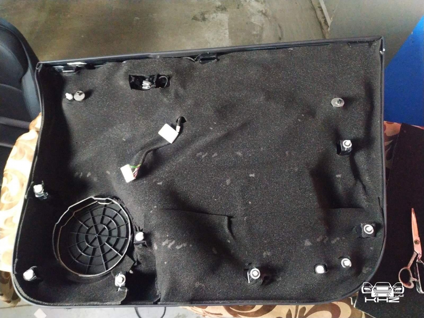Рухаємося далі і наступний шар - це обклеювання віброізоляцією другої частини дверей, там, де стоїть динамік, це важливий шар, оскільки після обклеювання він перетворює двері на закритий ящик для акустики і вона грає більш зібраніше, так само зміцнює метал і гасить резонанс від роботи акустики.