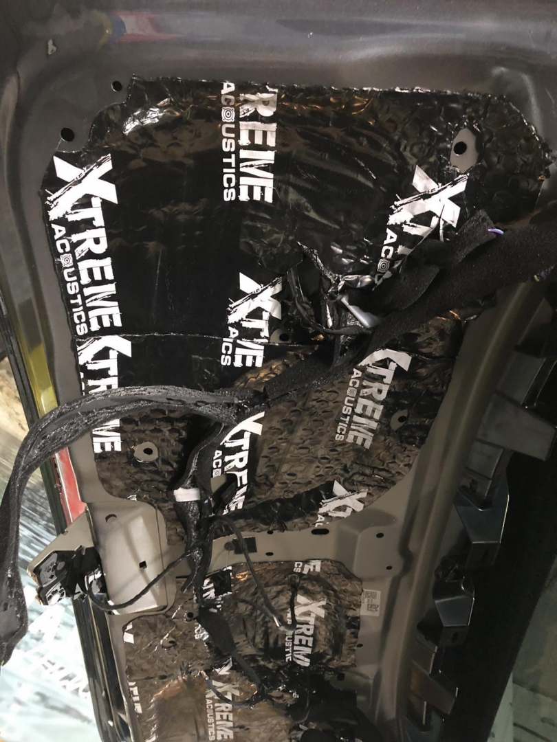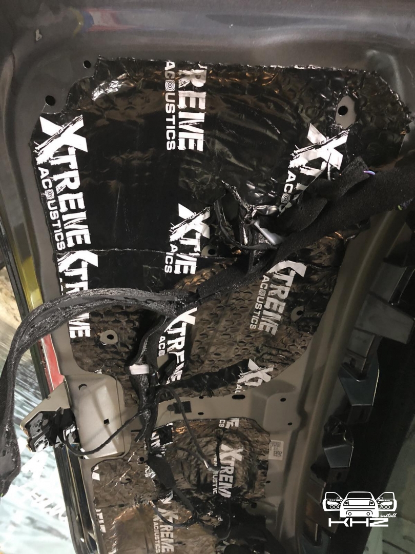Почнемо з шумоізоляції Tesla X, шумоізоляцію всіх дверей і кришки багажника ми робили полегшеними матеріалами хорошого сегмента, щоб не навантажувати двері, які відкриваються і закриваються автоматично.