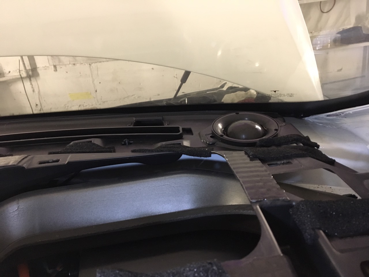 Так само під час розбору торпедо ми її злегка обезшумили на майбутнє, щоб прибрати скрипи, які рано чи пізно з'являться. Рухаємося далі і переходимо до встановлення нових твітерів в Tesla S, вони будуть встановлені в штатні місця в стійках, на жаль, фото загублені, але ми можемо сказати сміливо, що наші нові твітера добре вписались в штатні місця і були закріплені в штатні кріплення. Твітера були підібрані так само Ground Zero GZNT 25SQ, з максимальними характеристиками для системи класу SQ, що означає вищу якість звуку.