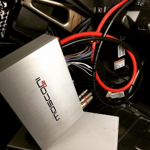 Так само плюсом всіх підсилювачів звуку в Tesla S є їхня максимальна компактність, щоб підсилювачі можна було встановити приховано, ми підбирали максимально компактні, їх було під'єднано якісними силовими мідними дротами, з подвійним захистом запобіжниками, підсилювач Mosconi D2 ми змогли встановити біля магнітоли праворуч, виготовивши площадку та закріпивши його там, а також вивели кабель для налаштування процесора в бардачок.