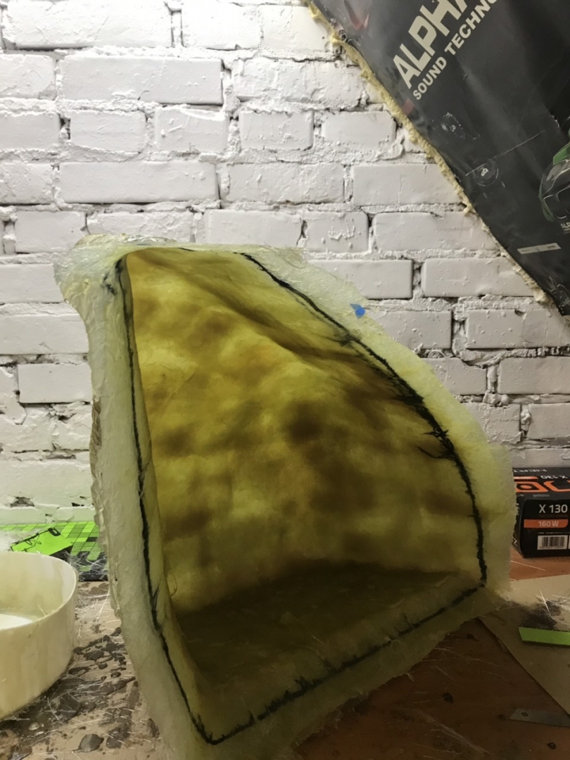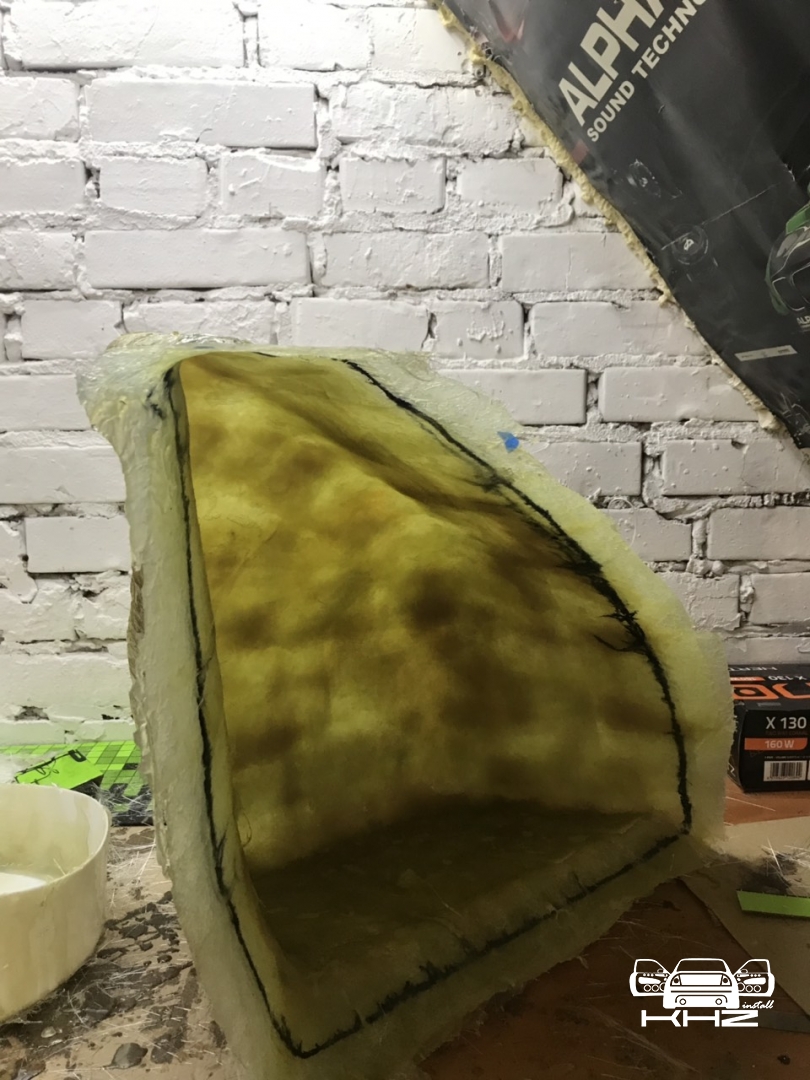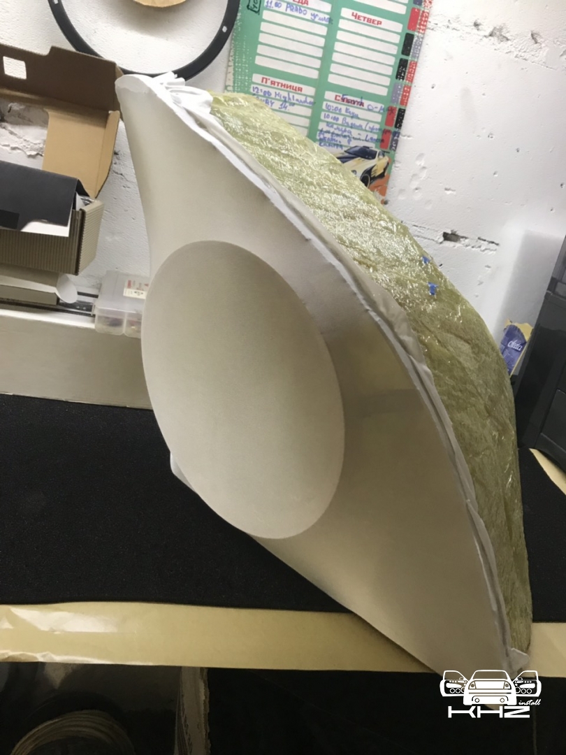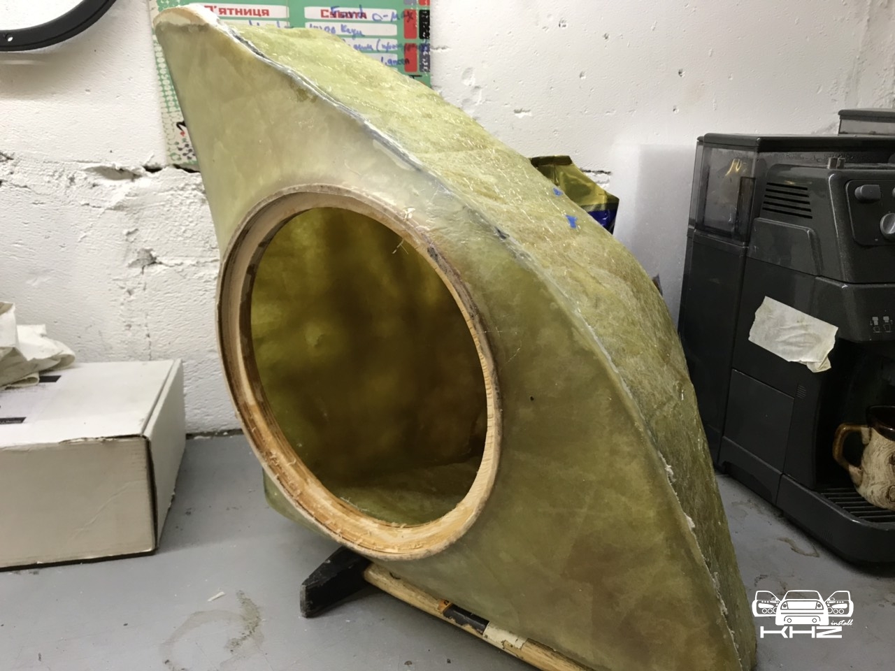 Ось такий зліпок ми зробили з правого крила і приступили до нарощування товщини короба. Тим часом ми вирізали посадкове кільце з фанери з утопленням для нашого потужного сабвуфера Ground Zero лінійки Uranium. Модель Ground Zero GZUW 10SQX, цей сабвуфер позиціонується як чудове рішення для системи SQ класу, так само він двокотушковий, що дає нам можливість підключити його з меншим опором, що дасть нам ще більшу потужність і запас!