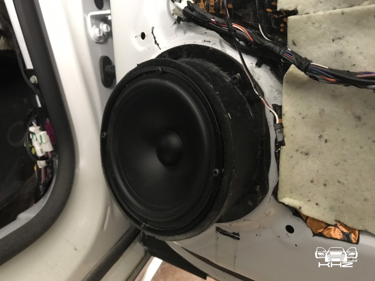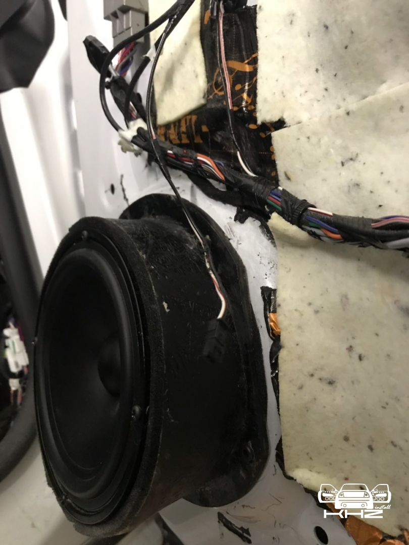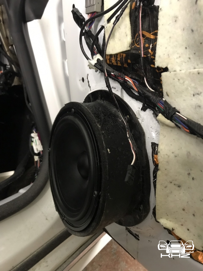 Далі в двері ми завели нову мідну акустичну проводку фірми Tchernov cables перерізом 2,5 для максимального передавання якості звуку і закріпили проставочні кільця в штатні місця.
