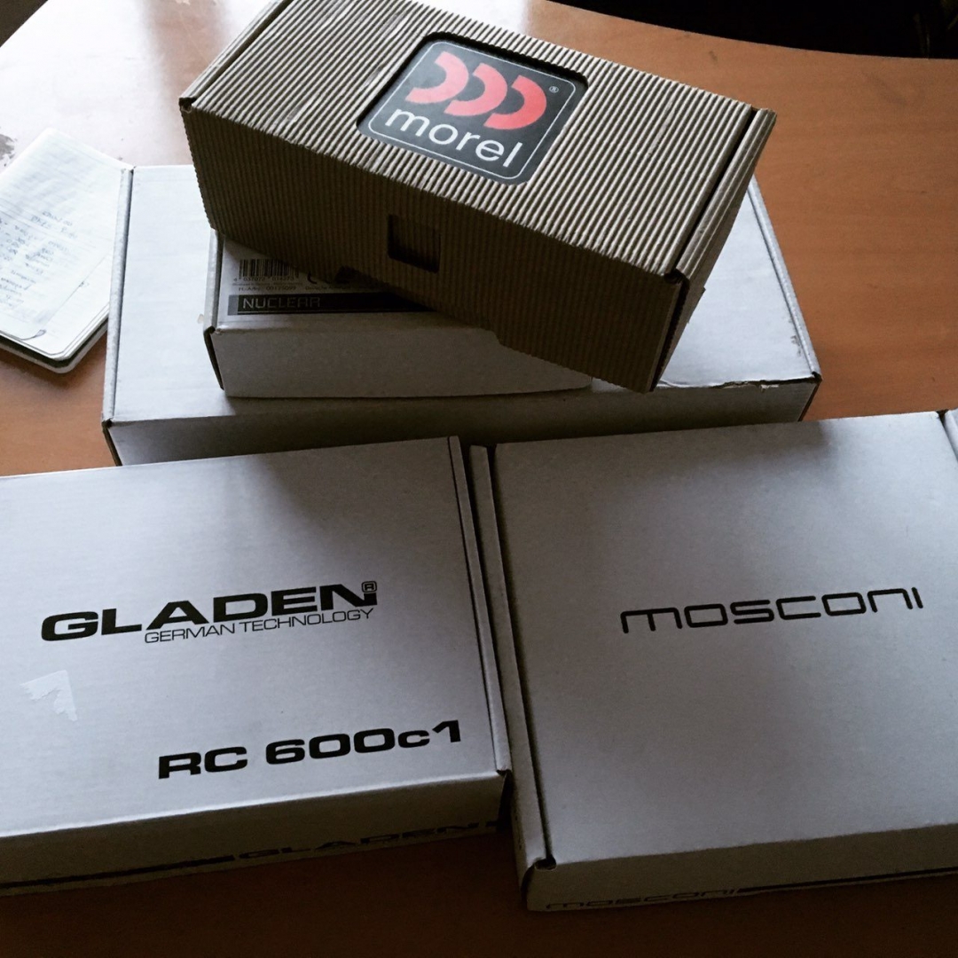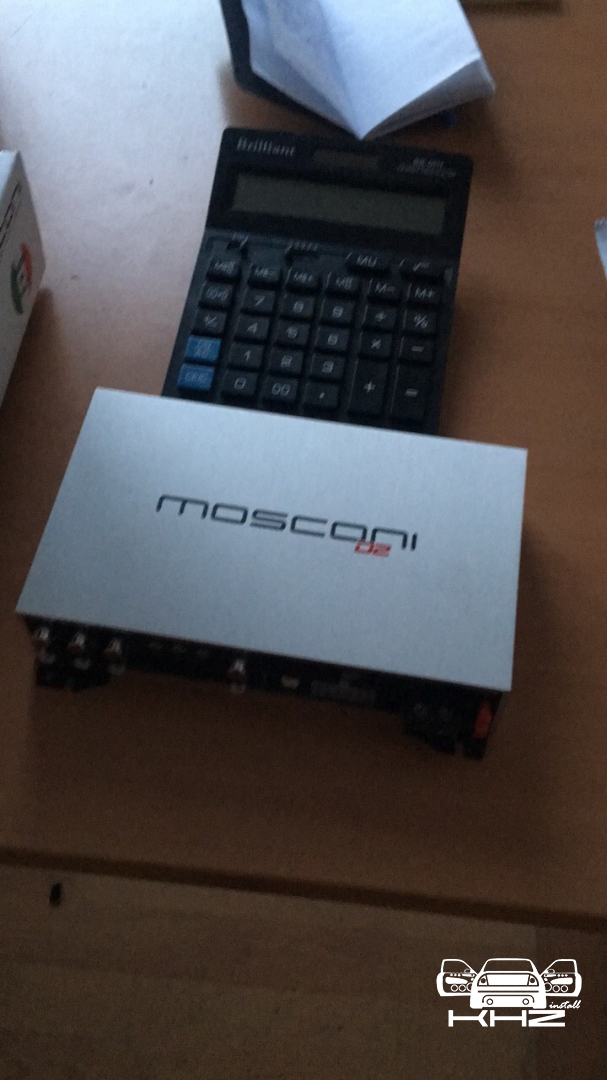 Отже, з фронтальною акустикою ми розібралися, переходимо до встановлення підсилювачів звуку, так, їх два, і це правильно, один із них - моноблок сабовий підсилювач звуку Gladen, виготовлений у дуже компактній формі. А ще один це процесорний підсилювач звуку Mosconi, чому так, тому що магнітола буде штатна, а всі знають, що штатні магнітоли мають низьку якість звуку, та й часто канали даних магнітол дають або порізаний звук, або спотворений, тому нам потрібен процесор для того, щоб діеквалізіровать сигнал і вирівняти його, щоб з ним можна було працювати далі. Вибір припав саме на цю модель, оскільки це 2 в 1-му, і процесор, який можна налаштувати за допомогою комп'ютера, і підсилювач звуку з вихідною потужністю 80Вт.