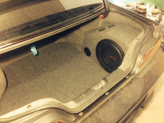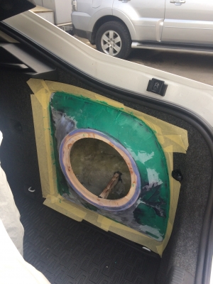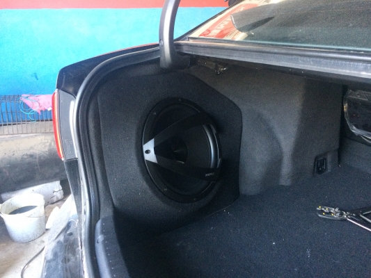 Переробили активний сабвуфер Edge для Honda Civic EK хетчбек, оскільки багажник там маленький, а саб займав майже весь корисний простір. Стелс під 12" динамік робити не хотіли, щоб не з'їсти весь корисний об'єм, та й стінки людина хотіла дерев'яні, вирішено було зробити гібрид. Дерев'яний короб у який врізалися б рідний підсилювач і фазоінвертор, а задня частина зі скловолокна йшла б у крило, тим самим звільняючи принаймні половину місця в багажнику.