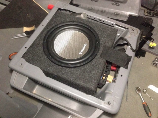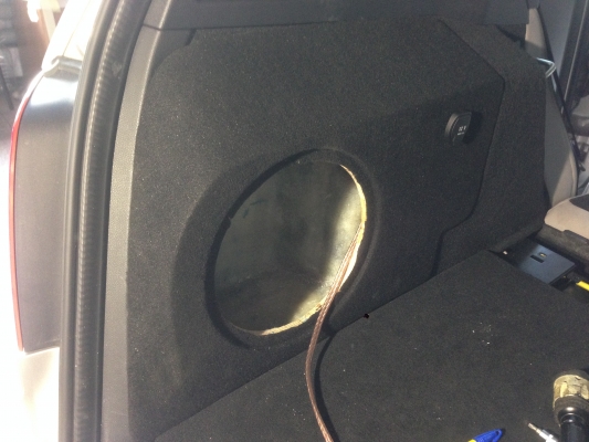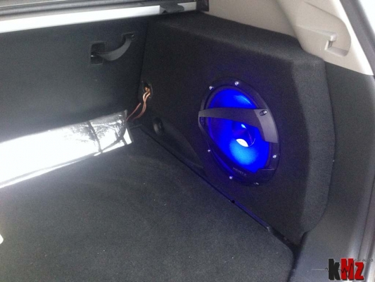 Прослухавши штатну акустику в цьому автомобілі, ми дійшли висновку, що вона не така вже й погана, тому, щоб кардинально поліпшити звук у цьому автомобілі, треба було щільно попрацювати, а це тягнуло за собою не скромний бюджет. Нашому замовнику було подаровано сабвуферний динамік розміром 12 дюймів. На заміну всієї акустичної системи він не погодився, але на встановлення сабвуфера в короб стелс і встановлення підсилювача моноблока він погодився. І так завдання було поставлено виготовити анатомічний короб під 30см сабвуфер Focal-Auditor, і встановити підсилювач звуку одноканальний, але ще суть була в тому, що всього цього повинно було не бути видно в салоні автомобіля, так би мовити штатний варіант. Завдання було зрозумілим і ми приступили до роботи:
