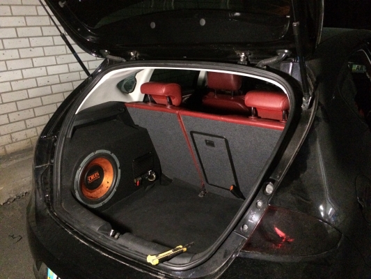 Приїхав на доопрацювання автомобіль Seat leon, який колись виступав на змаганнях, і був дуже добре підготовлений музично, але в ньому було одне але! Не було сабвуфера, вірніше він колись був і займав весь багажник, до нинішнього власника автомобіль потрапив без сабвуфера, і наш замовник хотів додати його, але тільки щоб компактно розмістити, так як пів багажника вже зайняла інсталяція підсилювачів потужності.