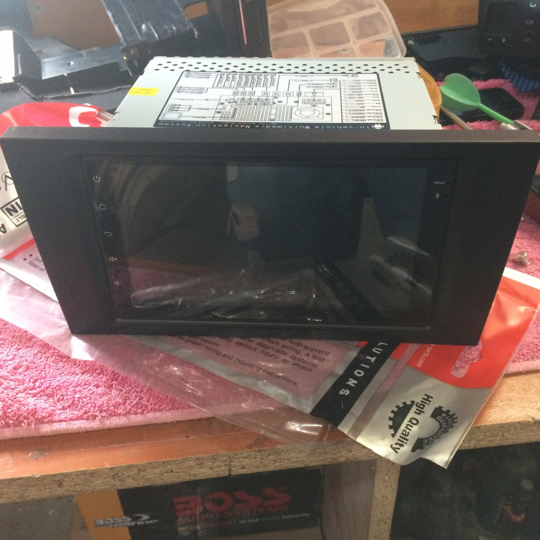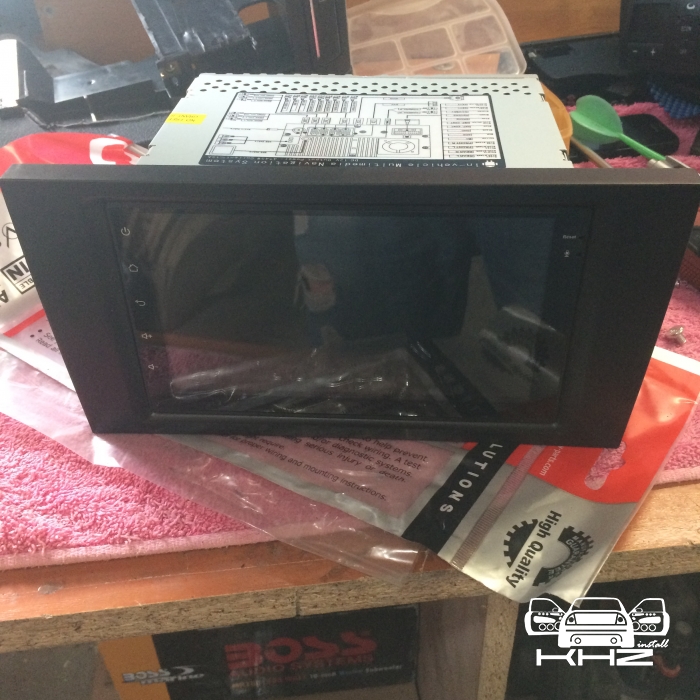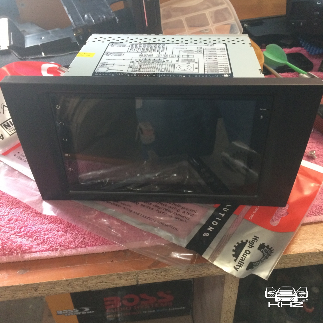 До основної рамки ми закріпили велику шахту під мультимедійну магнітолу, щоб вона могла сміливо демонтуватися. Тепер про магнітолу, її ми рекомендували замовнику, оскільки ця магнітола остання розробка, з хорошою версією Андроїд, і з усіма наворотами, включно з підключенням до інтернету. А саме 2 Din магнітолу Prime-x 7M. Ось так вона виглядає, вона повністю без кнопок, сенсорна.
