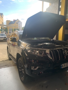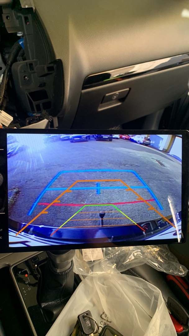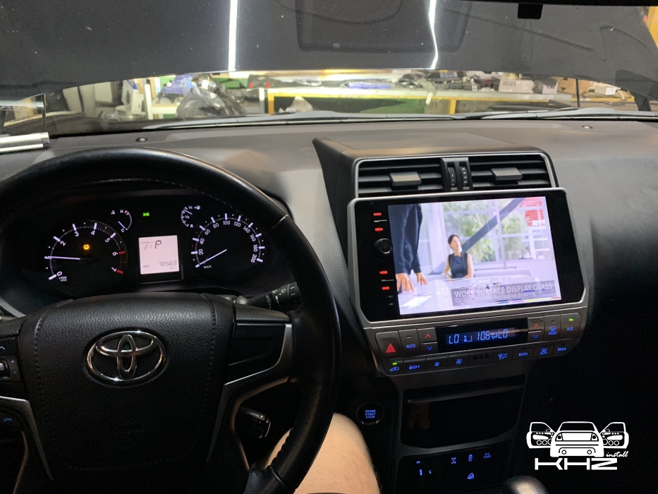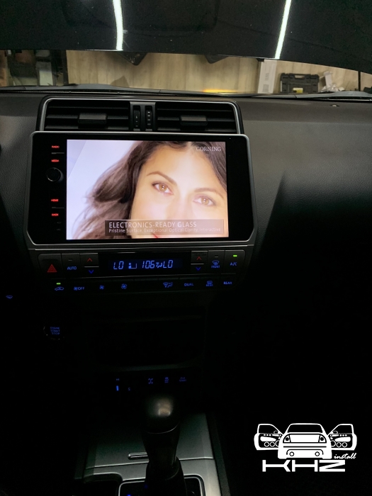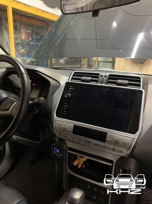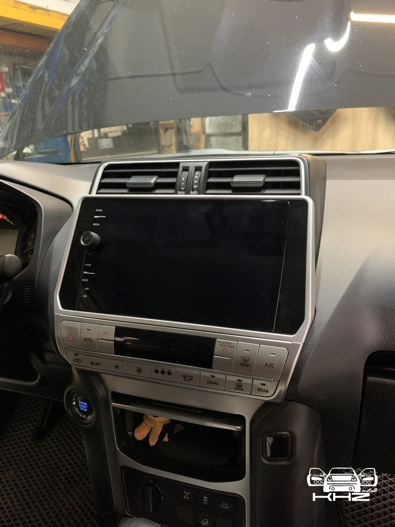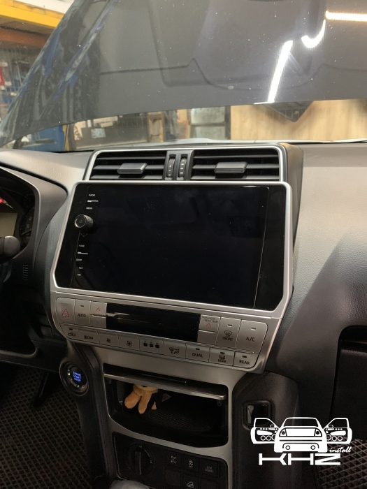 Ми виробляємо демонтаж штатної магнітоли, і починаємо підключати проводку, і розводити всі антени для навігації та інтернету, а також всі роз'єми для флешок і виносний слот під цим карту, для безперебійного інтернету. Також ми встановлюємо нову нашу магнітолу з новою перехідною рамкою з великим 10-ти дюймовим дисплеєм, все стає на свої місця, кріплення в новій штатній магнітолі підходять і магнітола Toyota Prado 150 кріпиться в штатні місця, всі з'єднання проводки та блоки ми затягуємо в м'який матеріал, щоб нічого не гриміло. І робимо складання всього тому, так само ми ще хотіли запропонувати відразу встановити і нову якісну камеру заднього виду для Toyota Prado 150, але тут вийшло так що стояла штатна і наша нова магнітола її підтримала, таке відбувається не завжди - найчастіше нові магнітоли не підтримують оригінальну камеру, так як у них інший принцип роботи та 6 вольт живлення а не 12 як у всіх камер не рідних, але якщо ви берете нову магнітолу не бюджетну - а високого рівня, тоді ймовірність збільшується, оскільки там більш опрацьовано підтримку штатних функцій. Замовника влаштувала якість штатної камери - тому було вирішено її залишити, але є варіанти з ще якіснішою картинкою з дозволом - AHD.