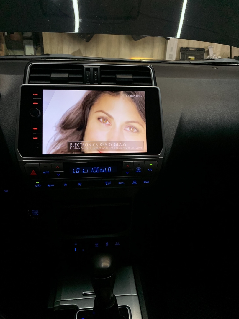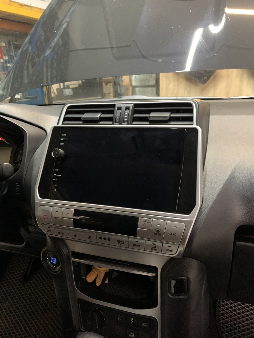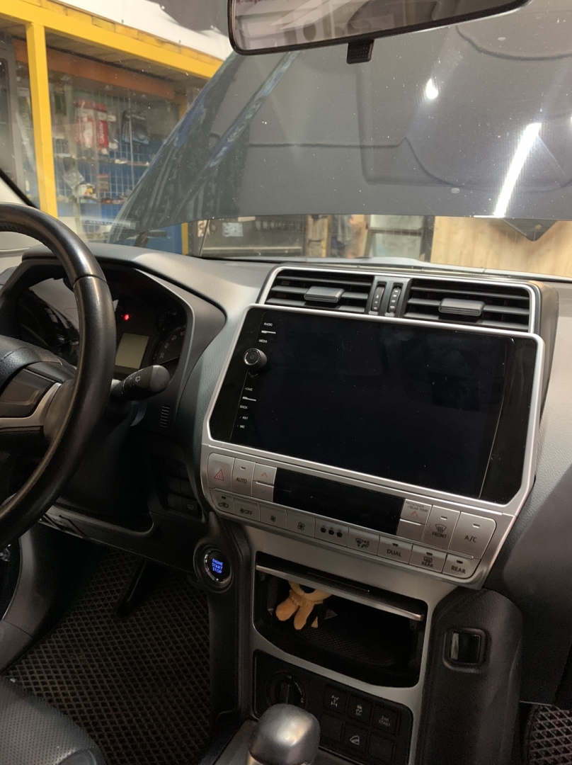 Друзі всім привіт, надамо вам інформацію про тюнінг автомагнітоли на автомобілі Toyota Prado 150, хоч і автомобіль досить свіжий, і нової генерації, але магнітола начебто нічого так, але це здається тільки до моменту включення - а так графіка як на приставці Sega , дуже маленька деталізація екрану та якість картинки убога як і меню. Ми маємо великий досвід у заміні штатних автомагнітол на автомобілі будь-якого класу, але Toyota Prado 150 – це у нас прямий частий гість. Так що ж, отримає власник автомобіля із заміною магнітоли? По суті і те й те магнітола, але питання в тому, що вже технології пішли вперед – а на штатній магнітолі у свіжому автомобілі, мати такі сумні характеристики – як якість екрану, поганий блютуз та радіо з флешкою – це звичайно слабко, тим більше на автомобілі не бюджетного класу.