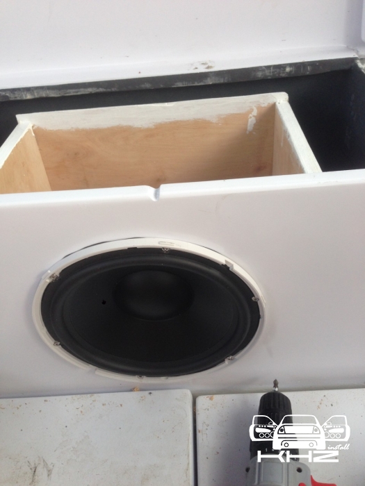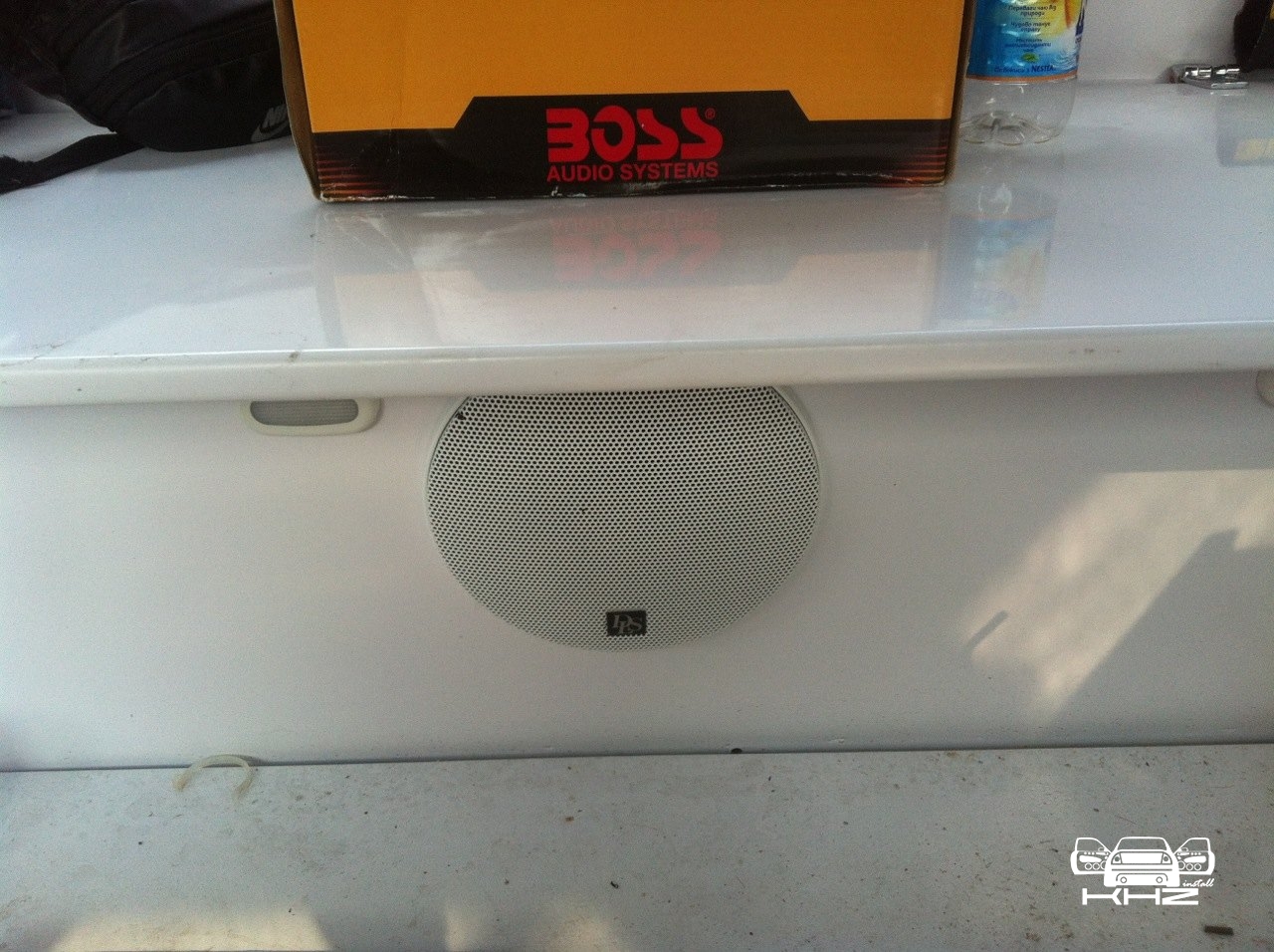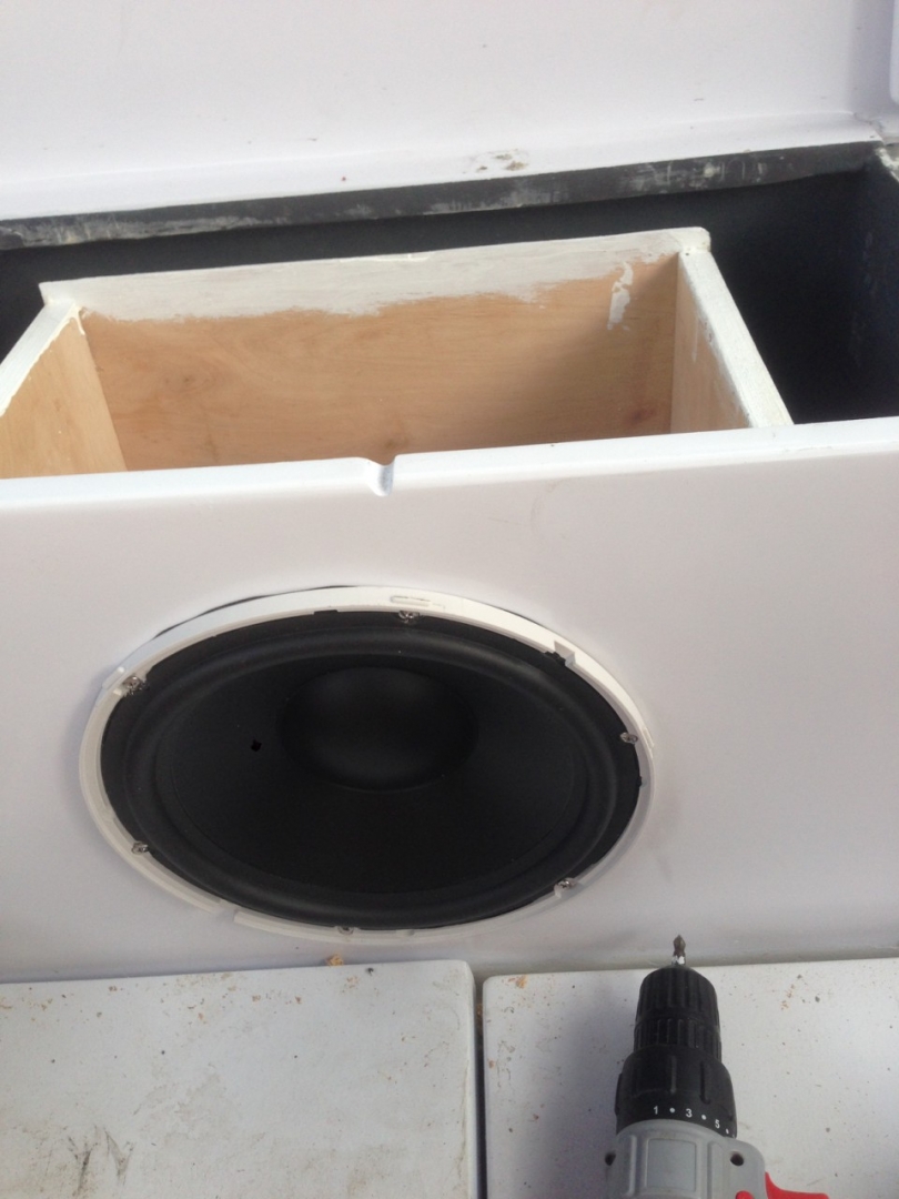 Після прорізання і зовнішнього посадкового діаметра, лицьова і внутрішня сторона саба були просіліконени і скріплені між собою. І був посаджений динамік, він був обраний морської серії фірми BOSS MARINE MR100, відмінний морський сабвуфер за бюджетною ціною.