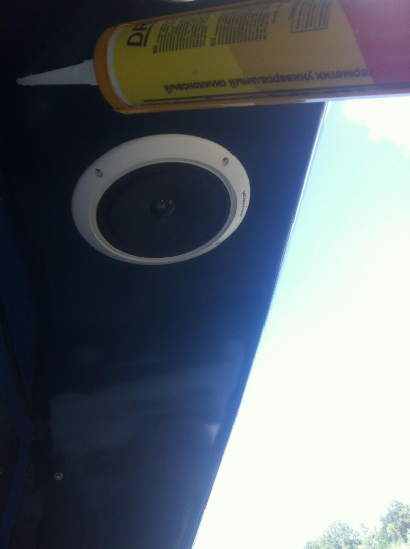 Прорізка пройшла успішно, і ми встановили динаміки в місця, промазали герметиком і закрутили за допомогою нержавіючих шурупів.