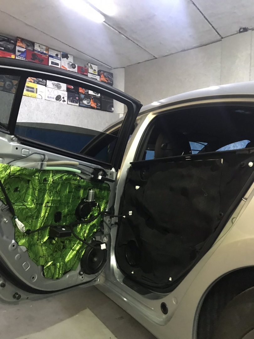 Все це потім збираємо і ставимо колесо на місце, з цим закінчили і шумоізоляція арок Шумоізоляція Kia закінчена, переходимо до другого за важливістю елементу - це двері.