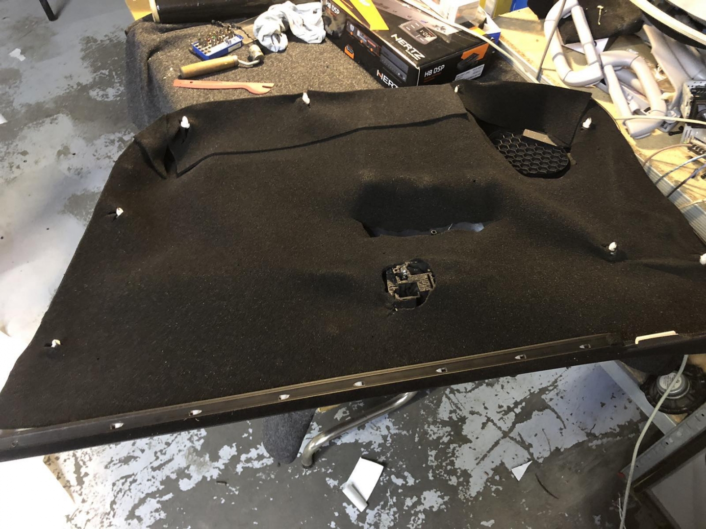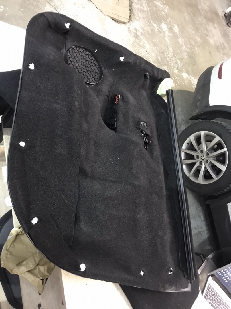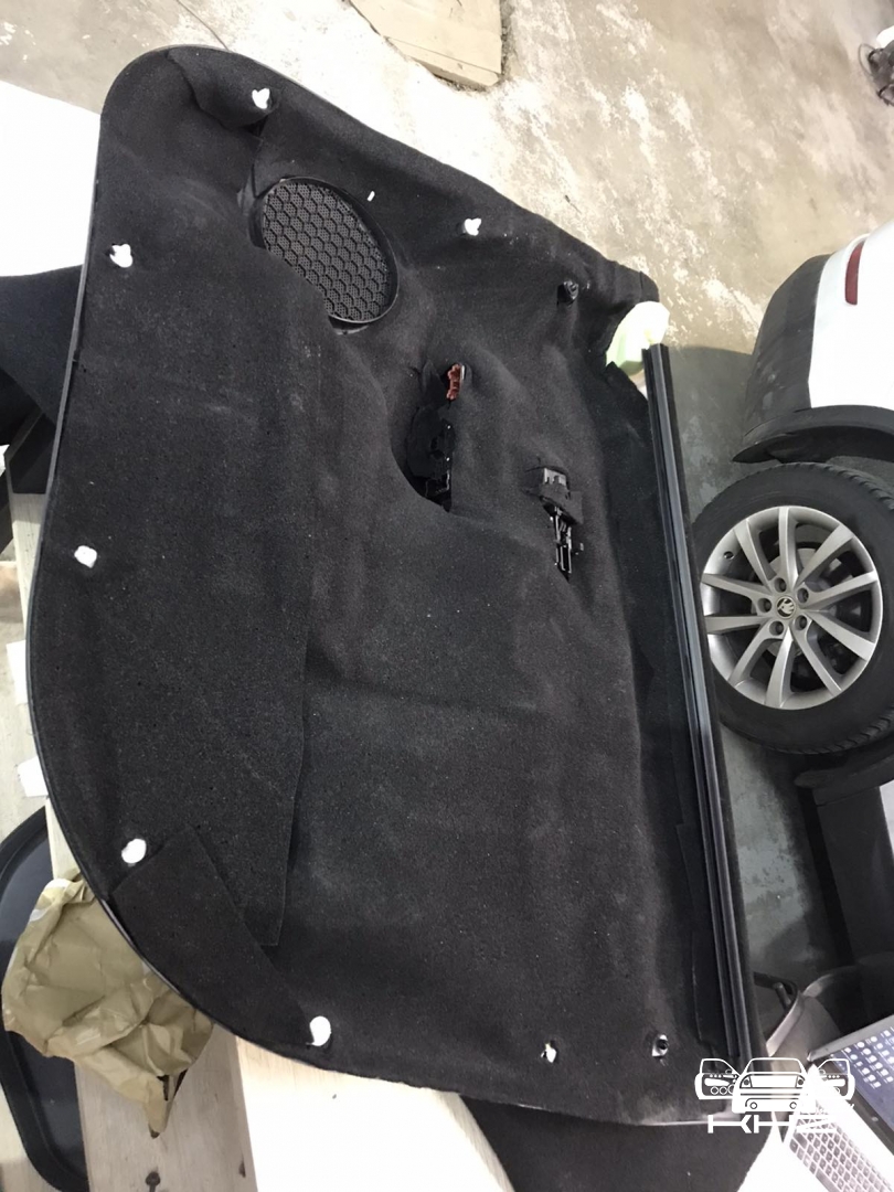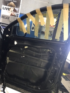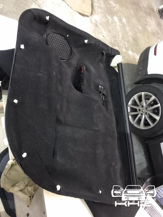 Четвертий шар шумоізоляції KIA Sorento це підготовка дверної карти із пластику, вона доволі велика та квола, її обклеюють окремими шматками віброізоляції, щоб зробити її більш чесною та жорсткою, а потім повністю покриваємо м'яким матеріалом, який прибере всі тертя карти з металевою частиною, а також приберуть шум, що пройшов уже кілька етапів приглушення.