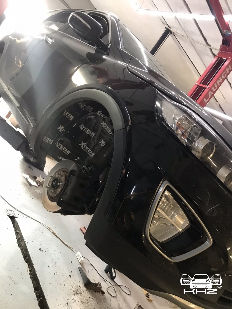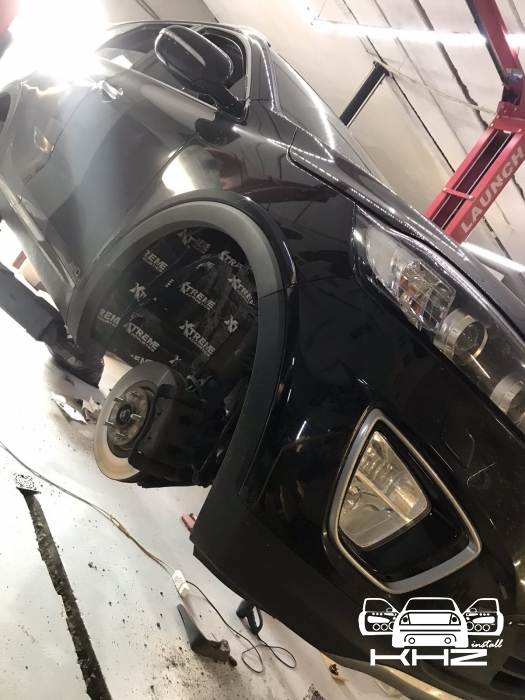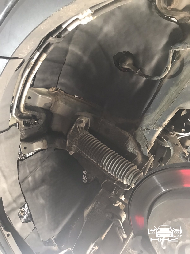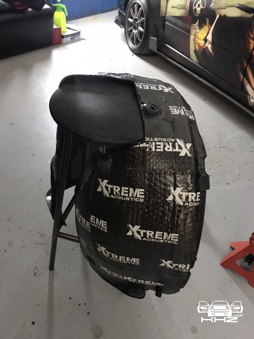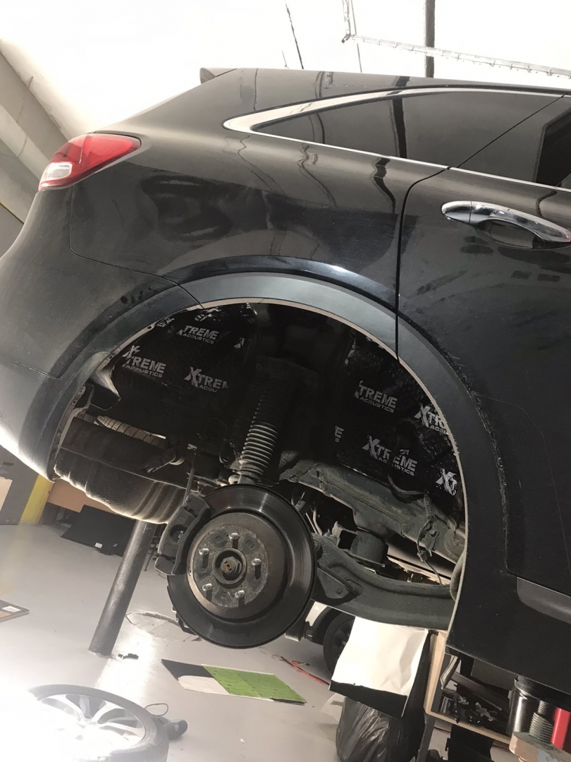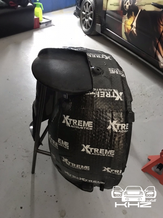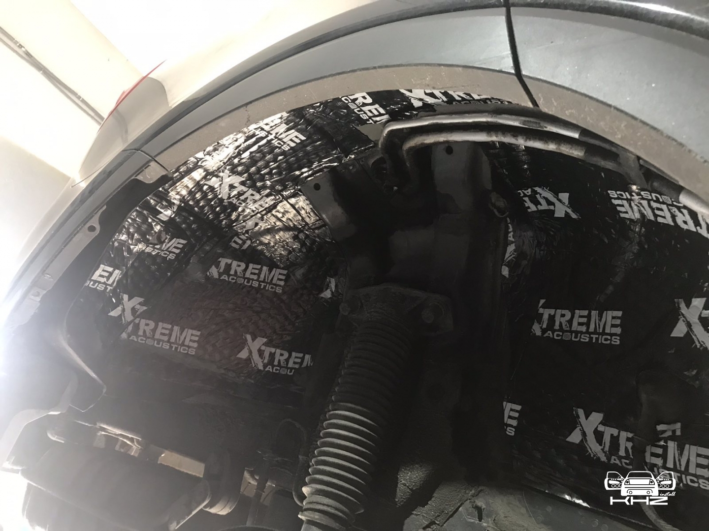 Щодо шумоізоляції дверей KIA Sorento закінчили і можемо переходити на другу зону, яка приносить дискомфорт в автомобілях КІА, це колісні арки, задні арки можна робити як з салону, так і ззовні, а ось передні, зсередини практично не видно, і добре їх зробити зсередини не вийде, тому робимо зовнішню частину і отримуємо максимальний результат. Тому і передні арки, і задні будемо обробляти ззовні. Для цього ми знімаємо підкрилки - спереду пластиковий, ззаду, як правило, ганчір'яний.І приступаємо до миття металу - чому це складна робота, оскільки це дуже брудна робота, при шумоізоляції арок KIA Sorento найголовніше - це правильно підготувати поверхню, вичистити від бруду, потім вимити кілька разів, оскільки зовні часто присутні ще жирні олії та всілякі мастила, які важко змити, і останній етап - це знежирення, щільне миття антисиліконом та витираємо насухо. Для шумоізоляції арок ми використовуємо матеріал Acoustics Xtreme, цей матеріал славиться своїм клейовим шаром, мастика настільки добре тримається - що зняти її фантастично складно. Матеріал укладаємо так само в нахлест з ребрами жорсткості, і максимально добре викочуємо за допомогою прикаточного валика. Матеріал беремо більш товстий для арок - ніж для дверей.