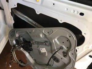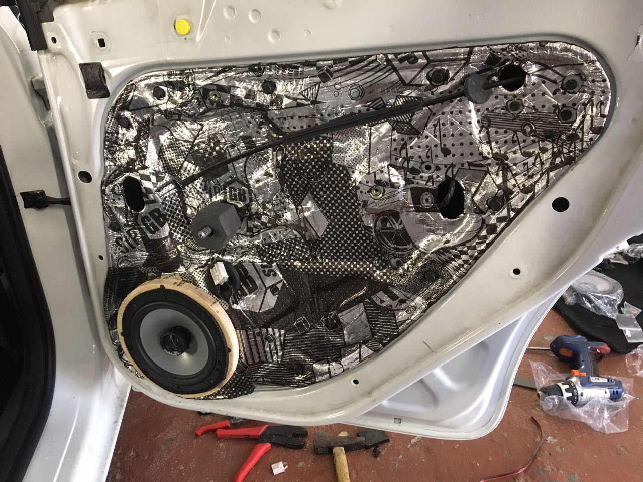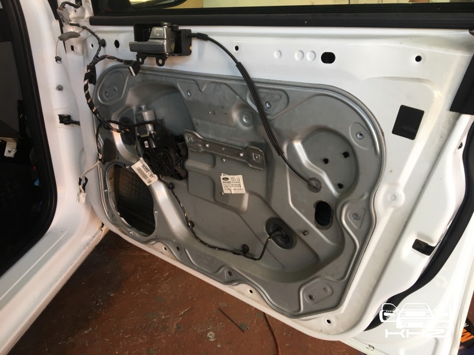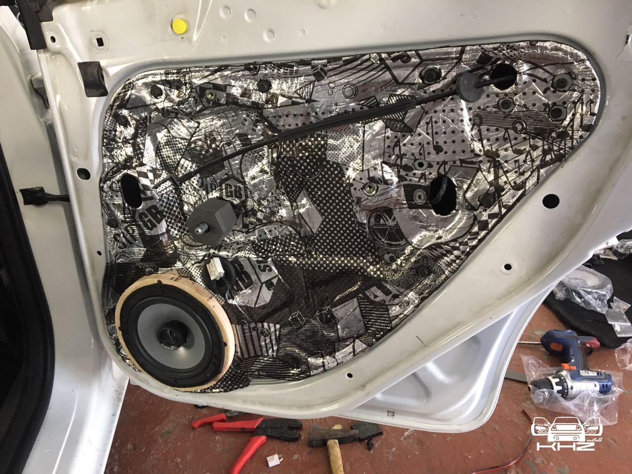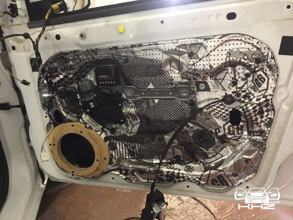 Для шумоізоляції дверцят ми знімаємо карти, потім фіксуємо скло і знімаємо щит, щоб дістати до внутрішньої частини дверцят, для якісного укладання матеріалів. Миємо і знежирюємо метал, і укочуємо віброізоляцію.