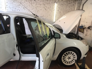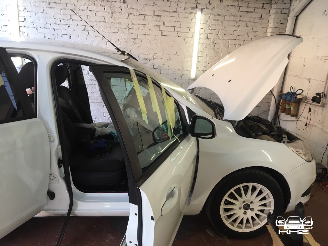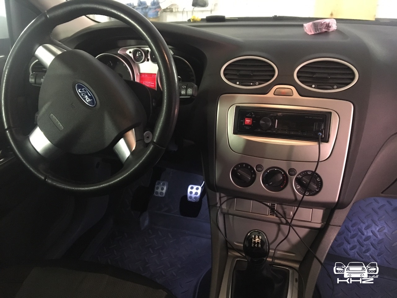 Встановлення акустичної системи в цей автомобіль, давно вже планувалося, і з поставленого завдання ми витягли максимальний результат, і так у нас є автомобіль Ford Focus 2-го покоління, зі слабкою музичною начинкою. Вердикт - замінити всю акустику, посилити звук за допомогою 4-х канального підсилювача і замінити головний пристрій на 1 дін магнітолу з нормальною якістю звучання і широкими функціями, так само зробимо повну вібро-шумоізоляцію всіх дверей для підвищення комфорту перебування в автомобілі і підвищення якості звучання акустики.