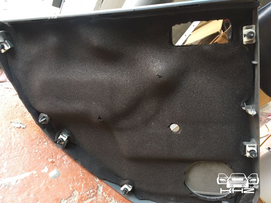 Далі ми приступили до шумоізоляції пластикової карти, вона обклеїлася віброізоляцією частково і зверху повністю обклеєна м'яким матеріалом на клейкій основі, щоб прибрати всі скрипи:
