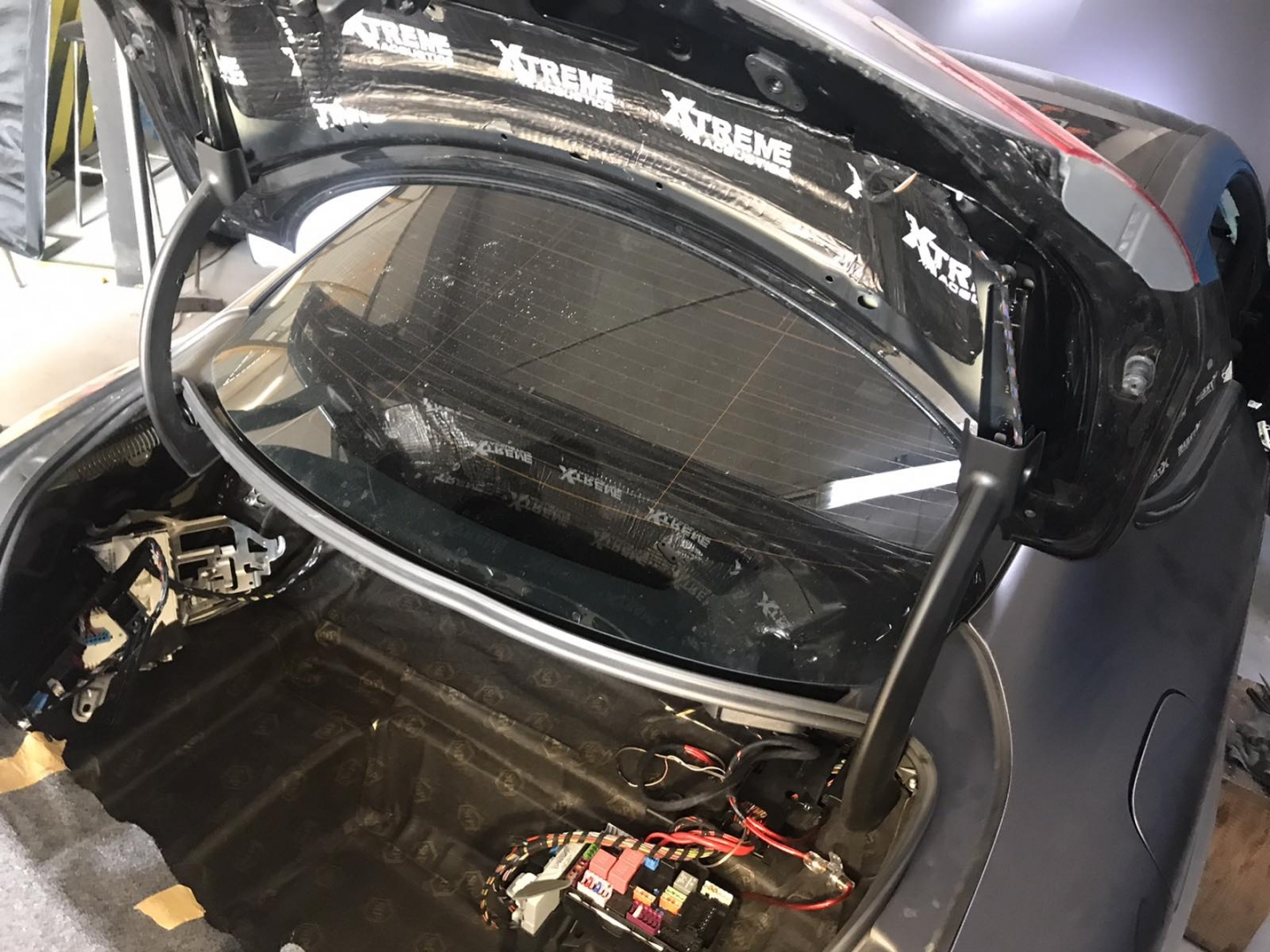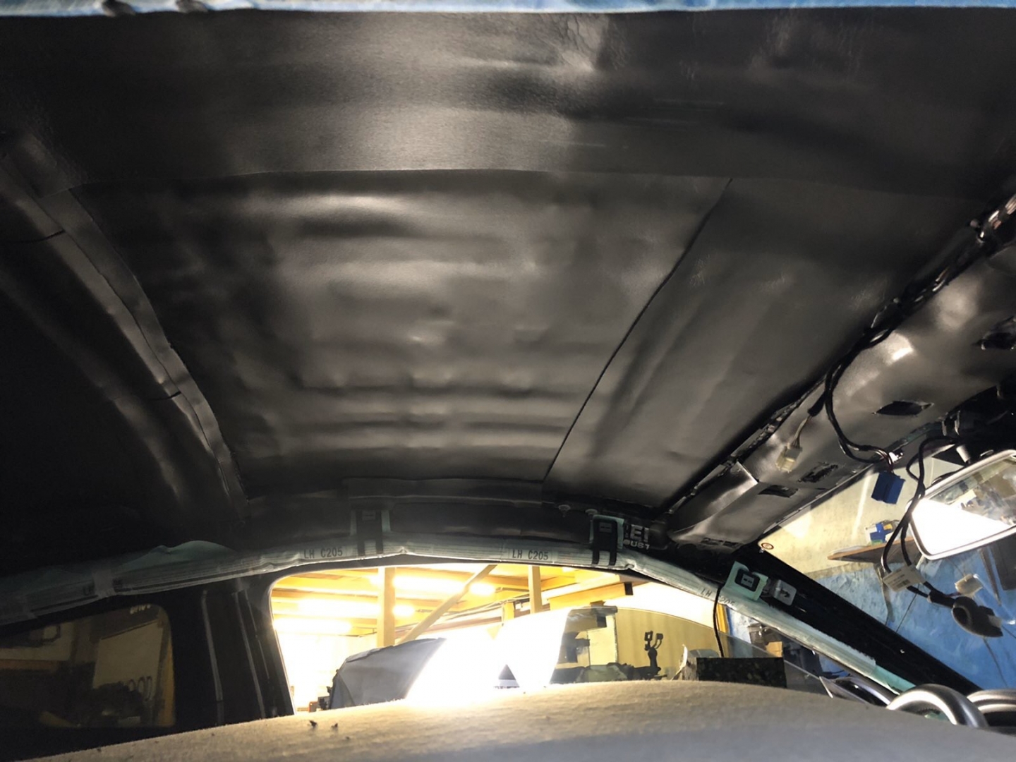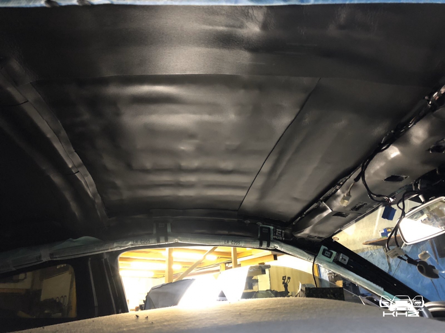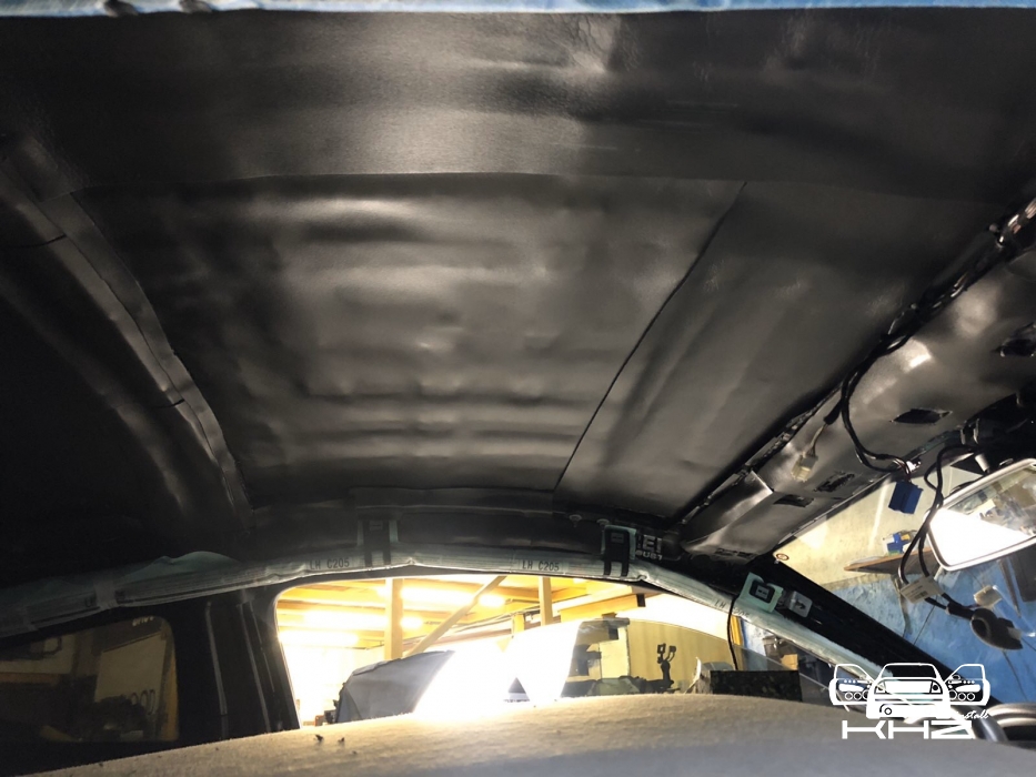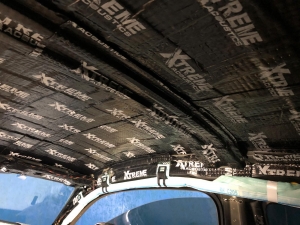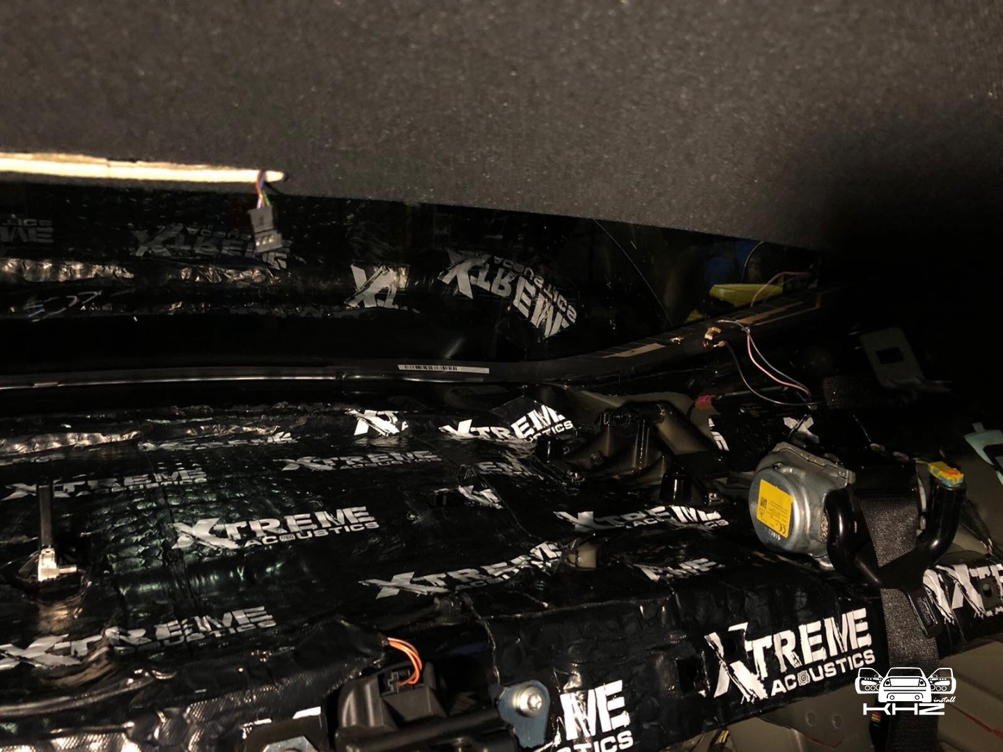 Насамперед, звісно, робимо дах автомобіля, оскільки автомобіль потрібно робити зверху вниз, щоб не зіпсувати матеріали, ті, що вже нанесли знизу, після розбору даху автомобіля стало зрозуміло, що він доволі великий, а ребер жорсткості - реально немає. Значить ми їх зробимо, оскільки під час набору швидкості, дах починає плавати через опір вітру, і через це з'являються сторонні гули. Проводимо армування даху, пластами жорсткої віброізоляції, щоб зробити міцний каркас. І поверх цього каркаса наносимо вже полегшений матеріал Acoustics Xtreme, товщиною 2 мм, ми заклеюємо весь дах, щоб, так би мовити, ніде не пропустити шум) Після того, як зробили шумоізоляцію даху Mercedes вібропоглинаючими матеріалами, переходимо до третього етапу - обклеювання тепло-шумоізолятором Soft, який дасть змогу зберегти тепло взимку в автомобілі довше, а влітку так само триматиме прохолоду кондиціонера. Обклеюємо весь дах - і у нас по ньому все, збираємо і перед цим ще перевіряємо всі дроти на антискрип, щоб нічого не деренчало і збираємо.