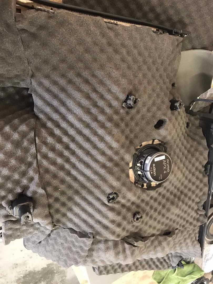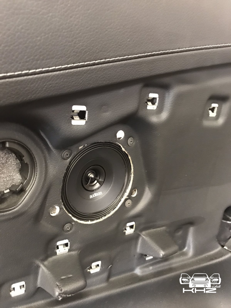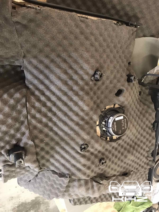 Так само під час шумоізоляції замовник попросив і замінити акустику в задніх нішах, ми запропонували чудовий варіант, акустика Італійського бренду Audison, її плюс, що в неї невелика посадкова глибина, якщо трохи глибше - то не влізе!