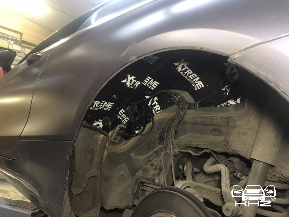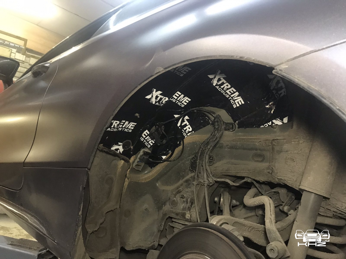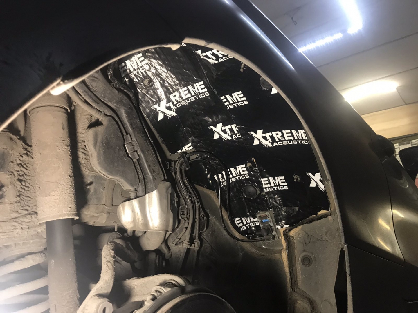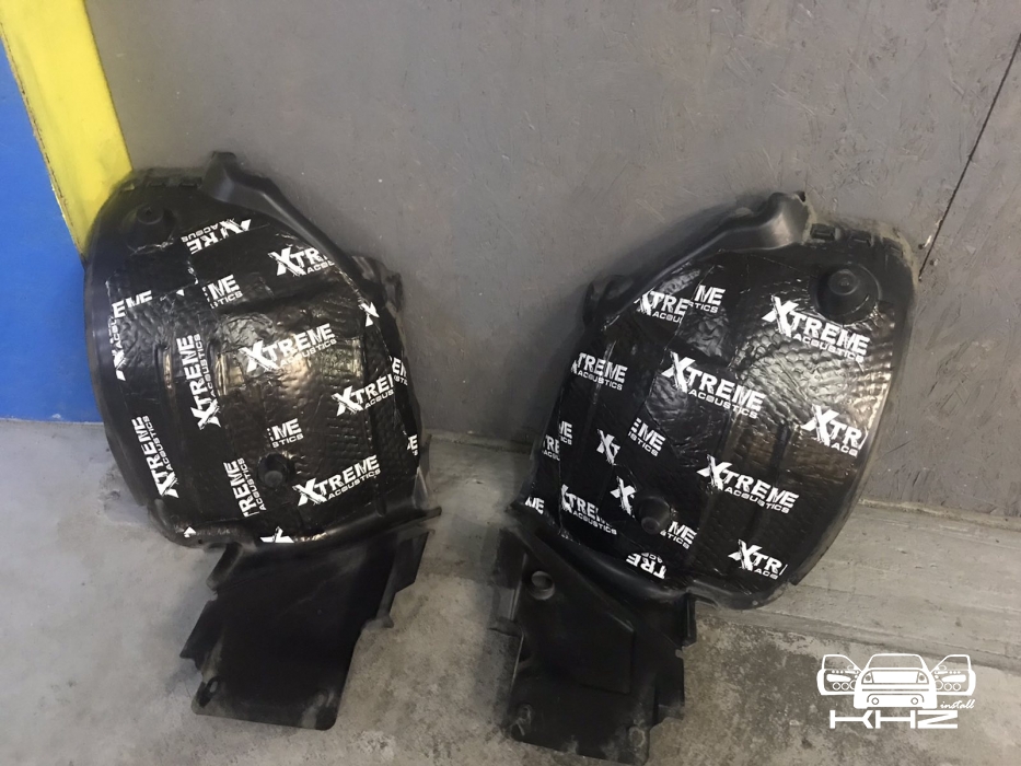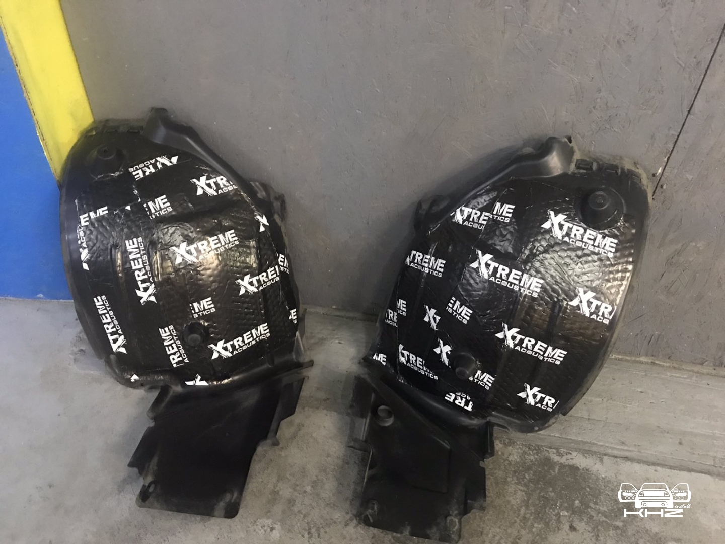 Так само ми робимо зовнішні арки, повна шумоізоляція - це повна) Знімаємо підкрилки, і очищаємо метал від бруду і підкрилки, обклеюємо віброізоляцією, товщиною 3 мм, такого ж бренду, для цього завдання краще не знайти. І підкрилки з пластику, так само заклеюємо, таким чином ми прибираємо шум від каміння, що летять об пластик, води, гравію і піску - дана шумоізоляція реально гасить всі непередбачені ситуації зовні. Тому ось таке рішення ми робимо для максимального захисту від сторонніх шумів.