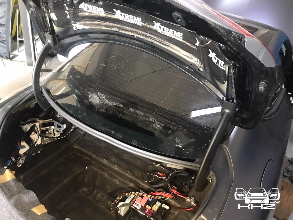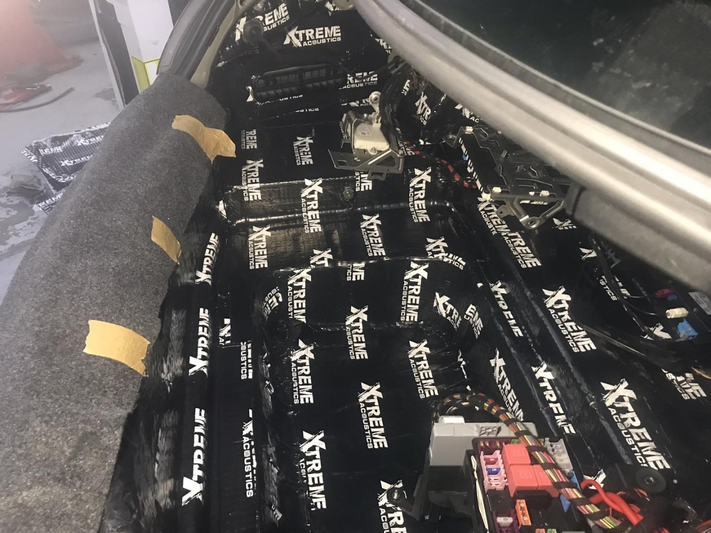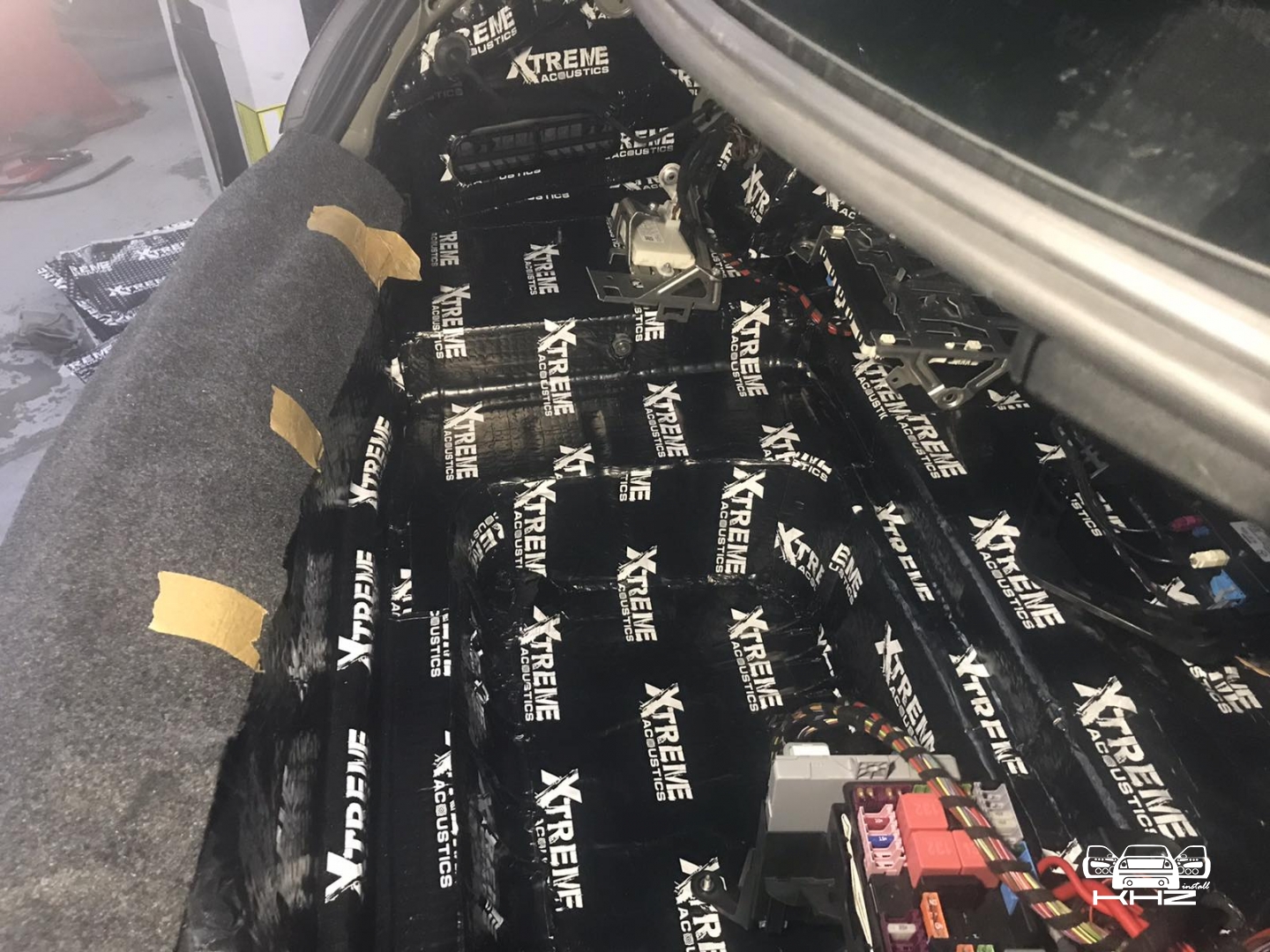 Так само у нас є багажник, який потребує шумоізоляції, тому переходимо до нього, він обклеюється так само само, як і салон, днище з арками - товстіший матеріал, боковини та кришка багажника - легший, обклеюємо максимальну площу та поверх наносимо тепло-шумоізолятор, який сендвічем боротиметься з шумами ззовні авто. І третій шар, як і в салоні, це блокувальний шар, результат такий, і вийшло ще дуже красиво, шкода, що все закрито буде під обшивками.