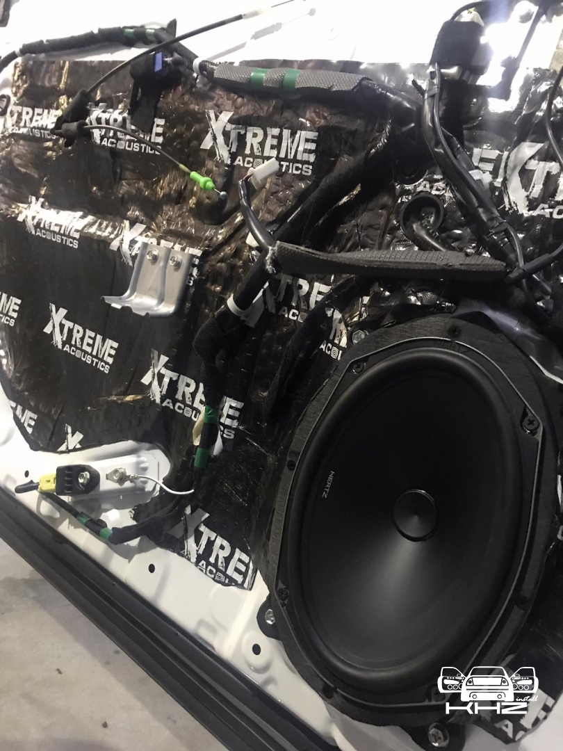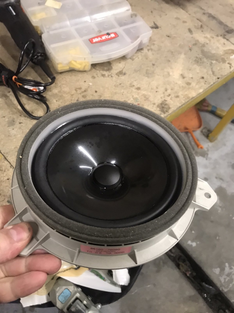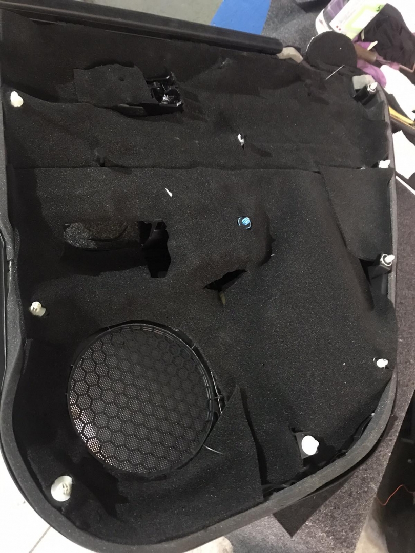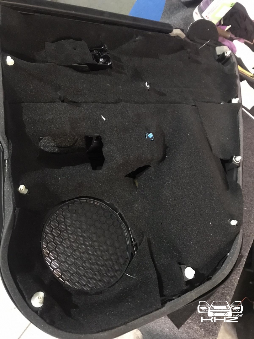 Далі у нас стояло ще завдання мінімально поліпшити звук в Lexus CT 200H, продзвонивши проводку, стало зрозуміло що виносного підсилювача звуку тут немає. АЛЕ магнітола ріже канали по-своєму, тобто сигнал на всі динаміки йде різний, якщо ж ставити акустику через кросовери, які ще поріжуть звук вдруге, - то результат на виході буде ще гіршим. Тому у нас є таке рішення, в передніх дверях стоять овальні мідбаси - ми їх так само міняємо на такі ж овали, тільки в рази якісніше, мідбаси ми вибрали бренду Hertz, щоправда, вони окремо не продаються, ми розукомплектували комплект акустики Hertz CPK 690. Для встановлення мідбасів ми виготовили проставочні кільця з фанери, 2-х складові і пофарбували щоб мали приємний зовнішній вигляд. Встановлені мідбаси мають такий вигляд: