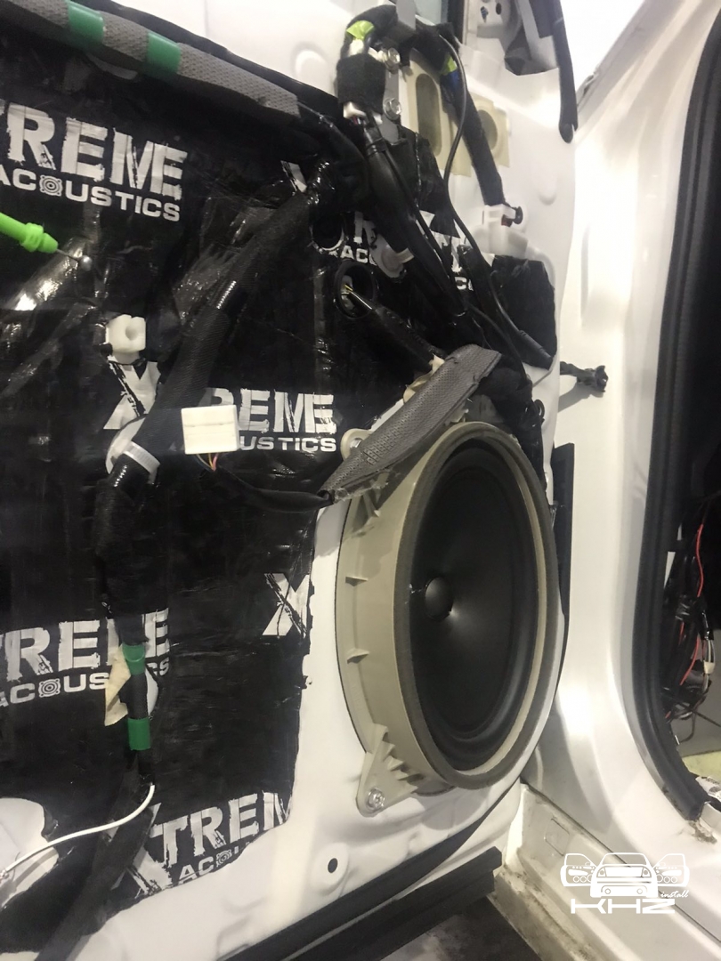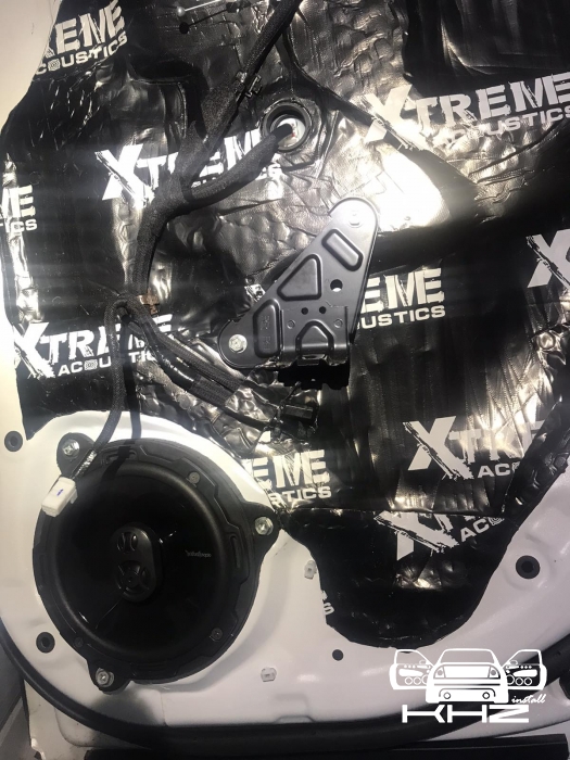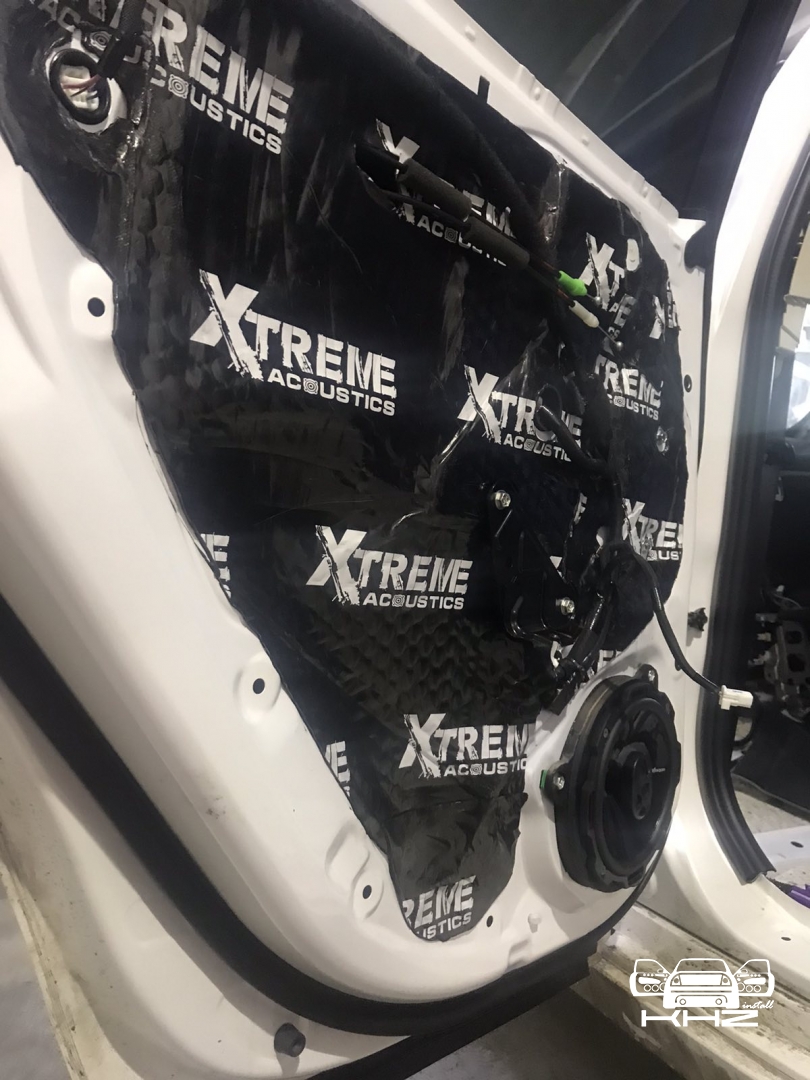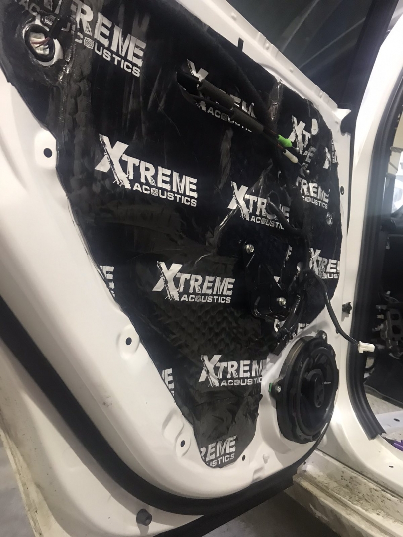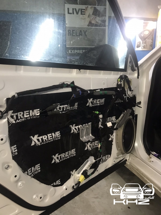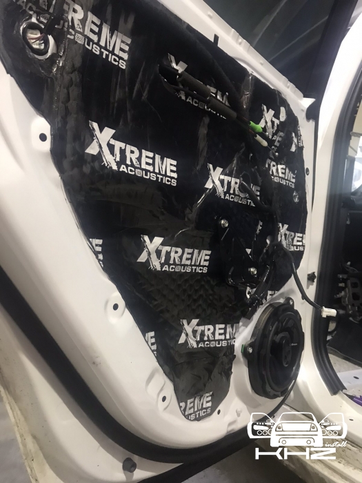 Третій шар це віброізоляція так званої фільонки дверцят, ця процедура дуже корисна насамперед для акустичного оформлення акустики, закочуючи всі анатомічні отвори, ми перетворюємо дверцята на закритий ящик для мідбасового динаміка, і він починає грати зібраніше та чіткіше, а також ми остаточно гасимо шум із зовні та прибираємо резонанс від роботи акустики, який розноситься всіма дверцятами та передається на картку.