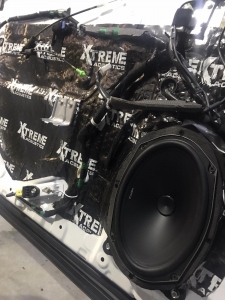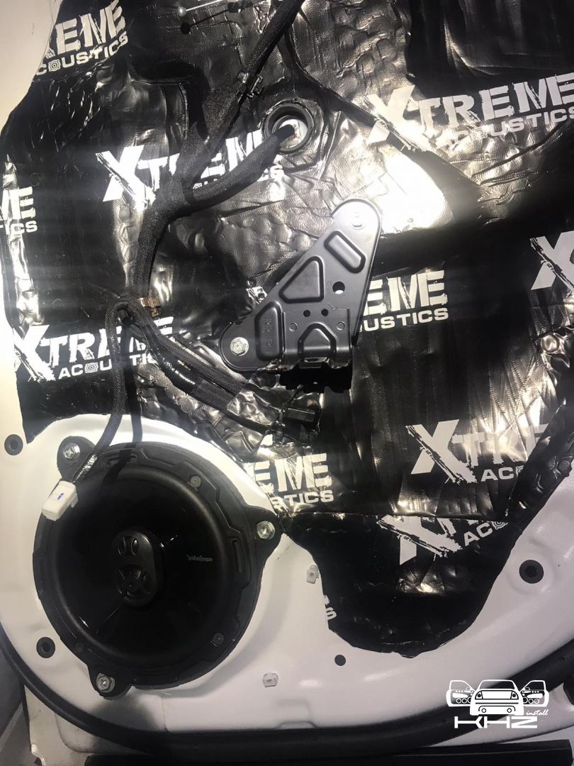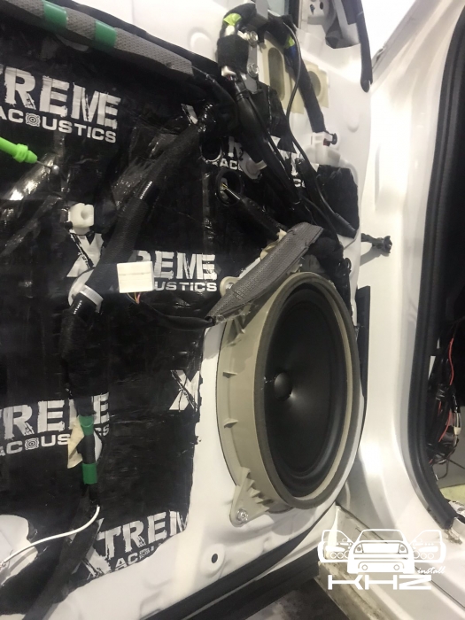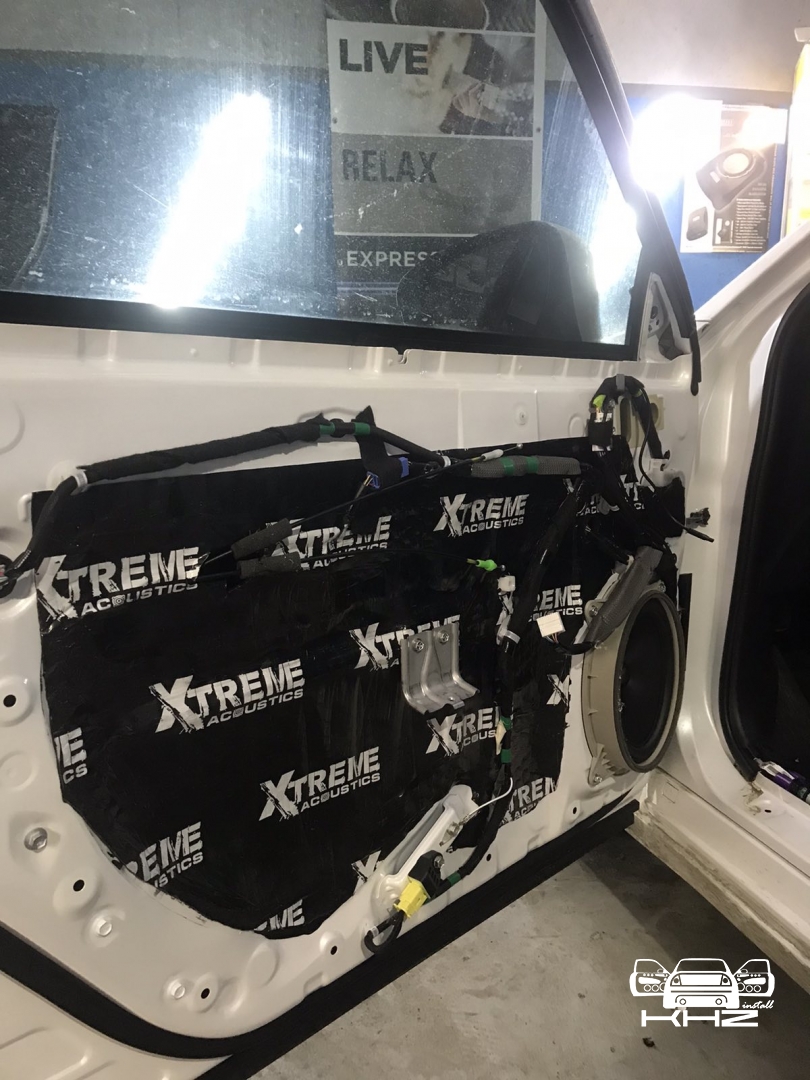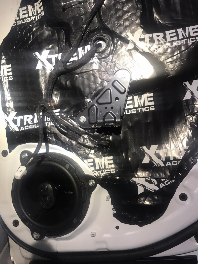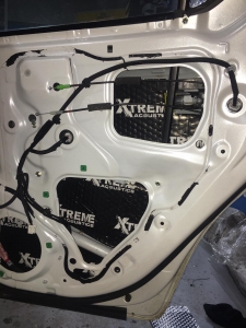 Третій шар це віброізоляція так званої фільонки дверцят, ця процедура дуже корисна насамперед для акустичного оформлення акустики, закочуючи всі анатомічні отвори, ми перетворюємо дверцята на закритий ящик для мідбасового динаміка, і він починає грати зібраніше та чіткіше, а також ми остаточно гасимо шум із зовні та прибираємо резонанс від роботи акустики, який розноситься всіма дверцятами та передається на картку.