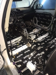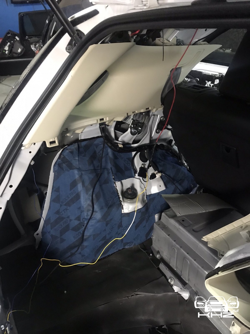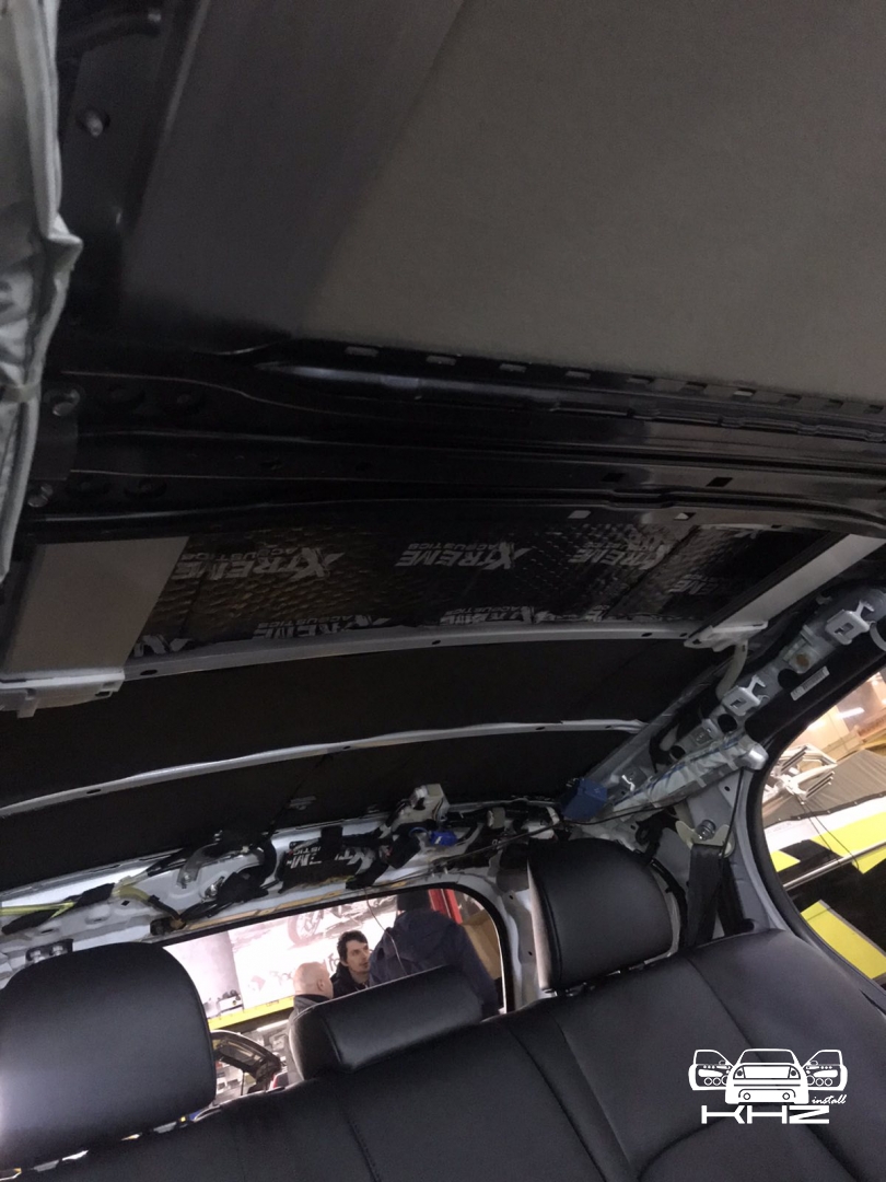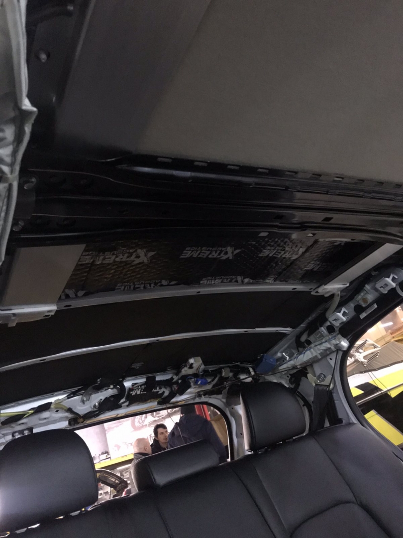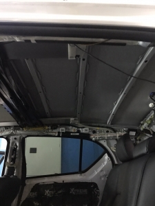 Суть в тому що, для шумоізоляції даху будь-якого авто, потрібно, грубо кажучи, розібрати підлогу автомобіля, оскільки всі стійки, як правило, розбираються від низу до верху, і практично весь час на шумоізоляцію даху витрачатися на його розбирання та збирання, у цій моделі у нас був люк, але однаково дах був доволі не маленьким. Дах ми обклеїли щільно, з хорошим нахлестом, щоб отримати максимальний результат, шумоізоляція даху дається взнаки в більшій мірі коли ви їсте трасою, зникає гул вітру і опір, так само коли йде дощ - ви просто його не чуєте, коли він падає на дах. Дах ми робимо в 2 шари, віброізоляція і тепло-шумоізоляція, а також виробляємо антискрип всіх гофр і проводів, це дуже важливо провести роботу з деталями, оскільки якщо це не зробити - буде тихо, але може вискочити якийсь цвіркун на ямах, і буде меганеприємно двом сторонам!