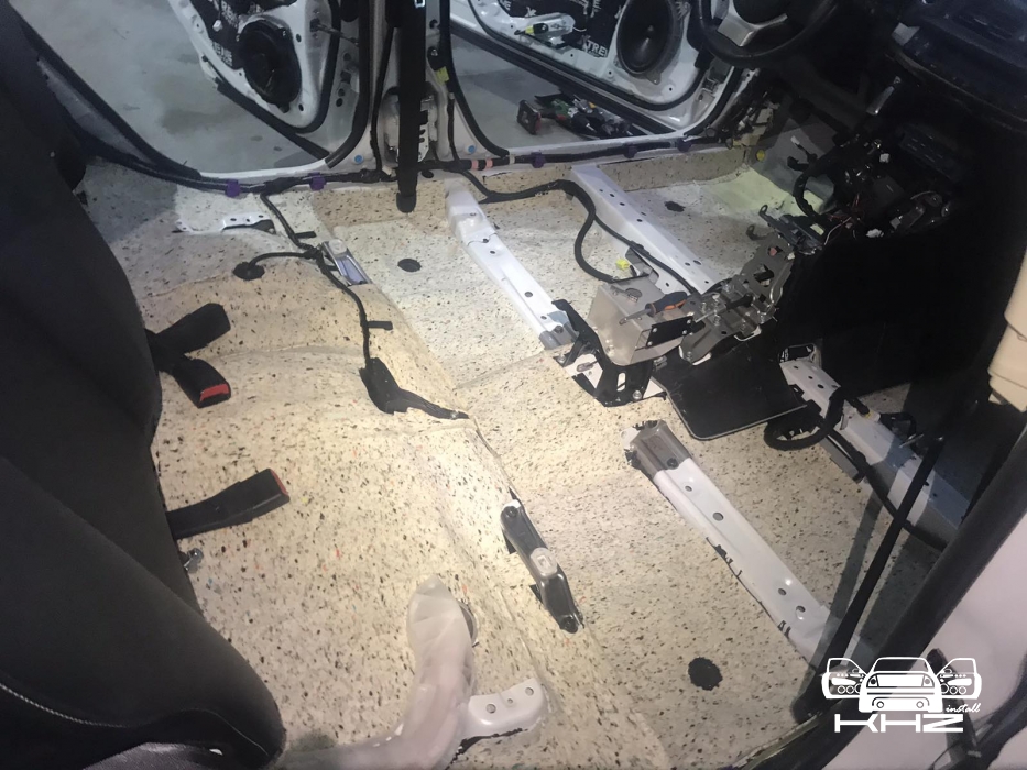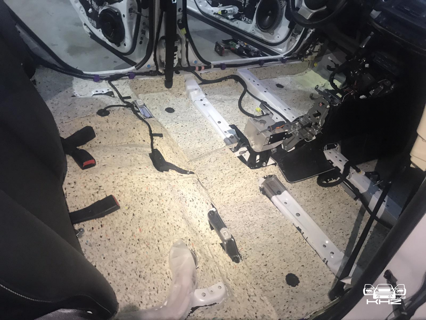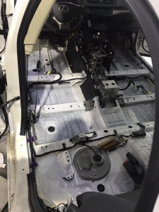 Йдемо далі, і переходимо до днища салону і багажника, там ми використовуємо більш товсту віброізоляцію, для того, щоб прибрати шум від дороги і коліс, закочуємо всю підлогу, крім ребер жорсткості, щоб там не накопичувався конденсат. виглядає це так:
