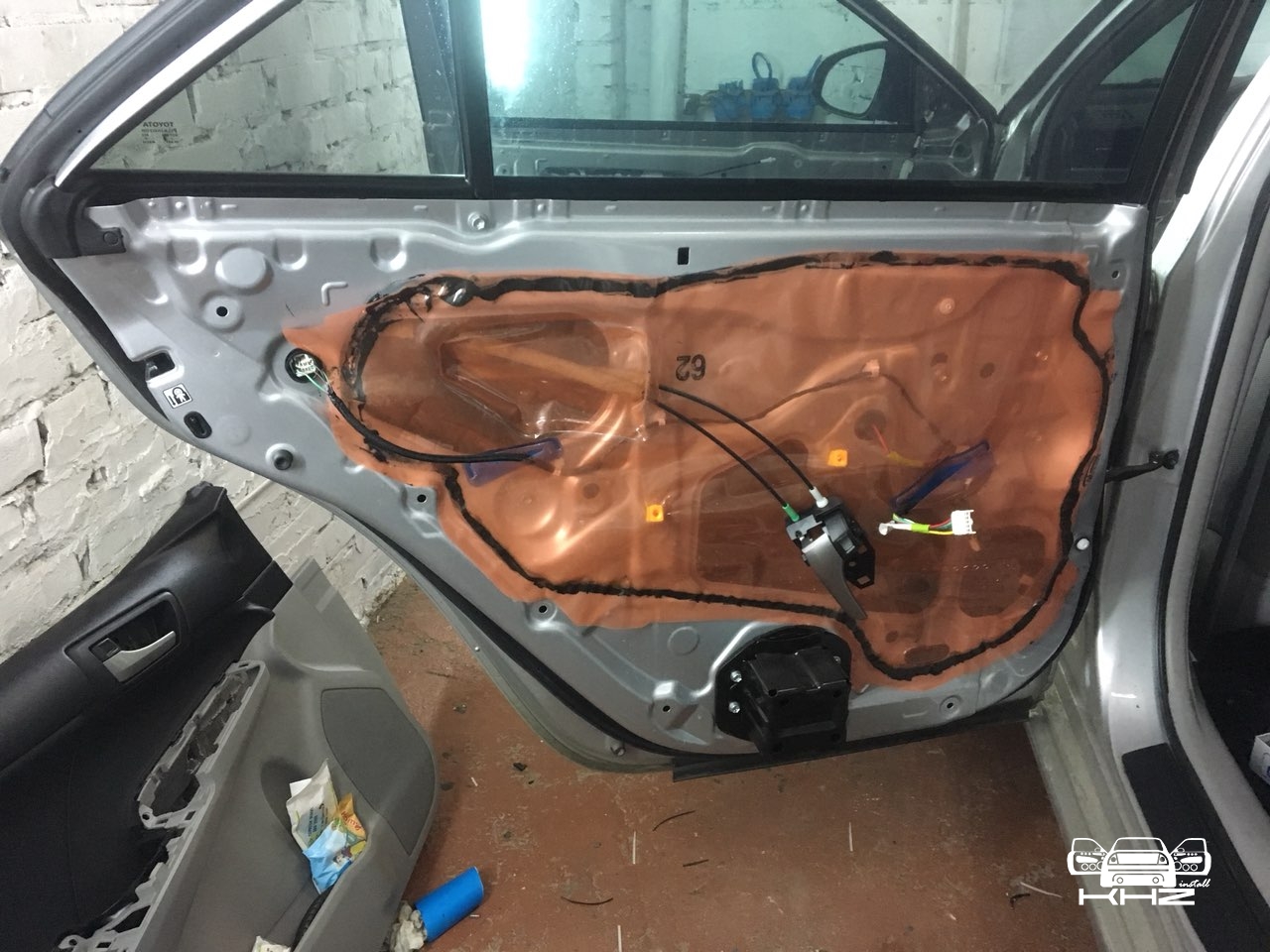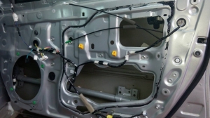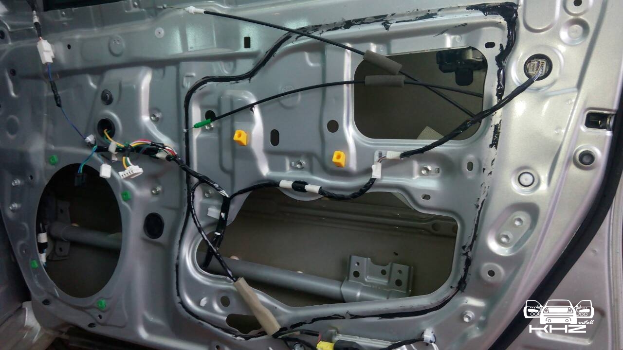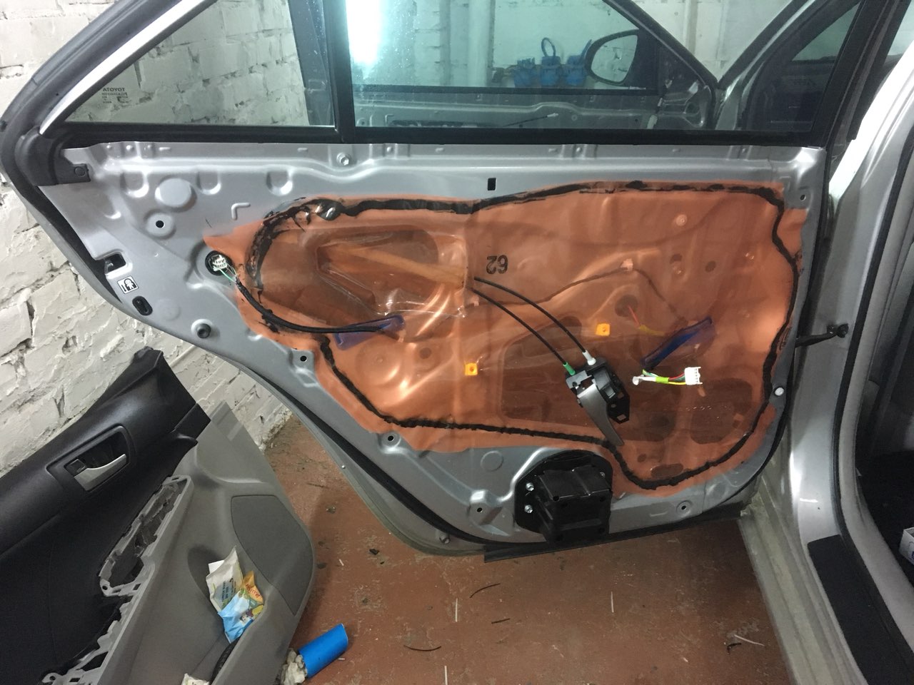 Почнемо з дверей, розбираємо їх і дивимося, дивимося і бачимо метал на металі, і жодного шматочка шумопоглиначів або віброізоляції, це ж Камрі? Зате целофану не пошкодували)