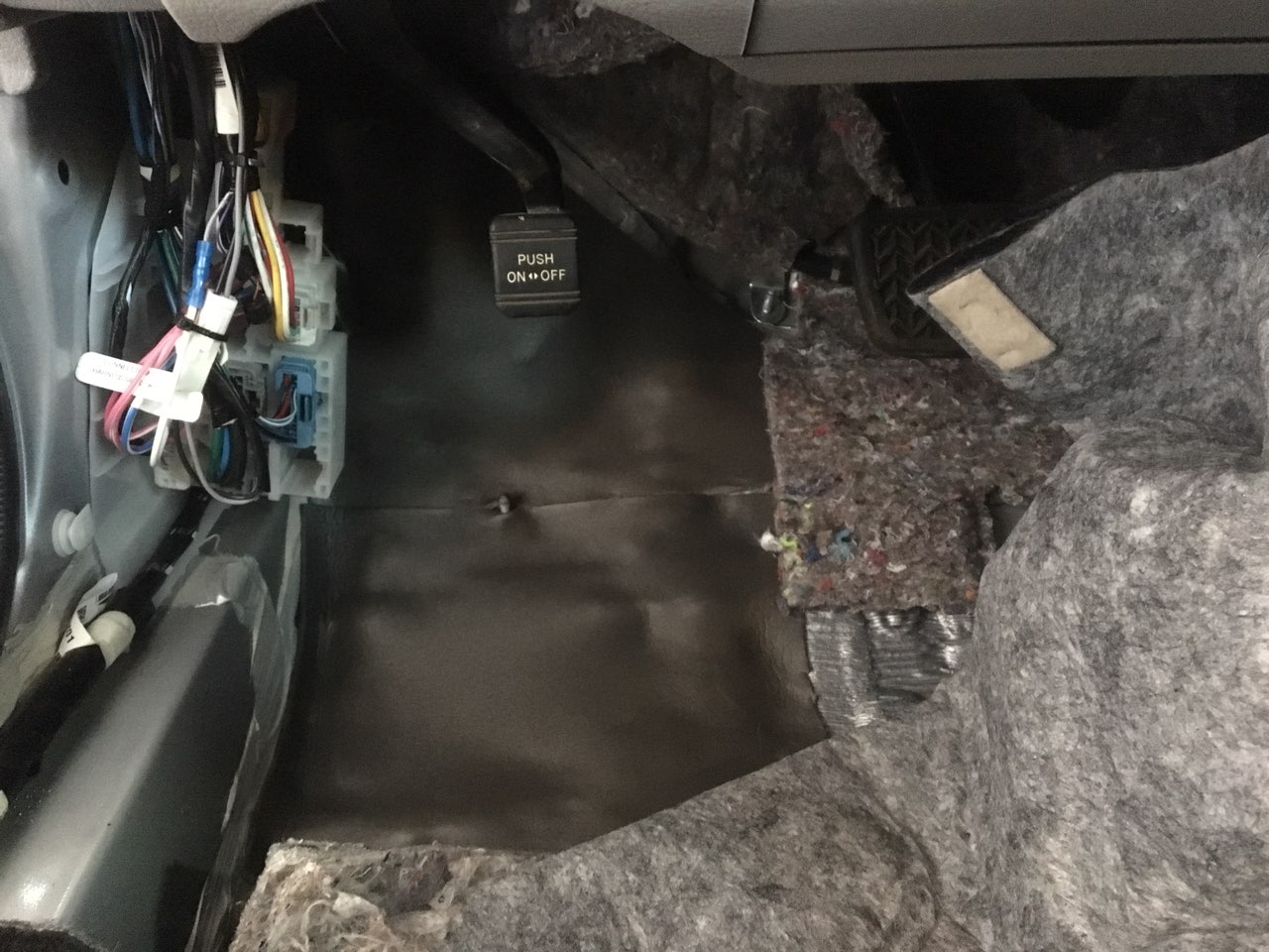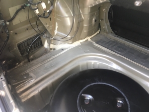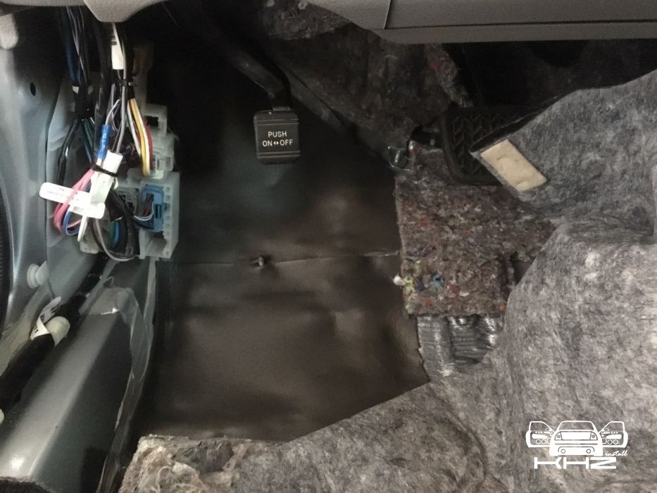 Всі арки ми робимо з двох сторін, з салону і з зовнішньої сторони, це дає найкращий результат у боротьбі з шумом і додає максимальний комфорт в авто. Тепер перейдемо на передні арки, розбираємо підлогу під торпедо і обробляємо арки зсередини в 2 шари.