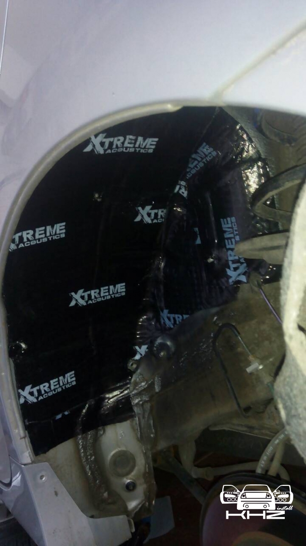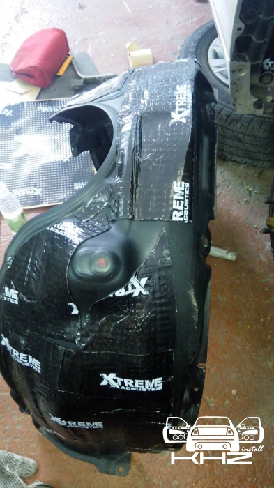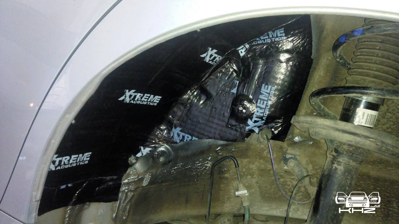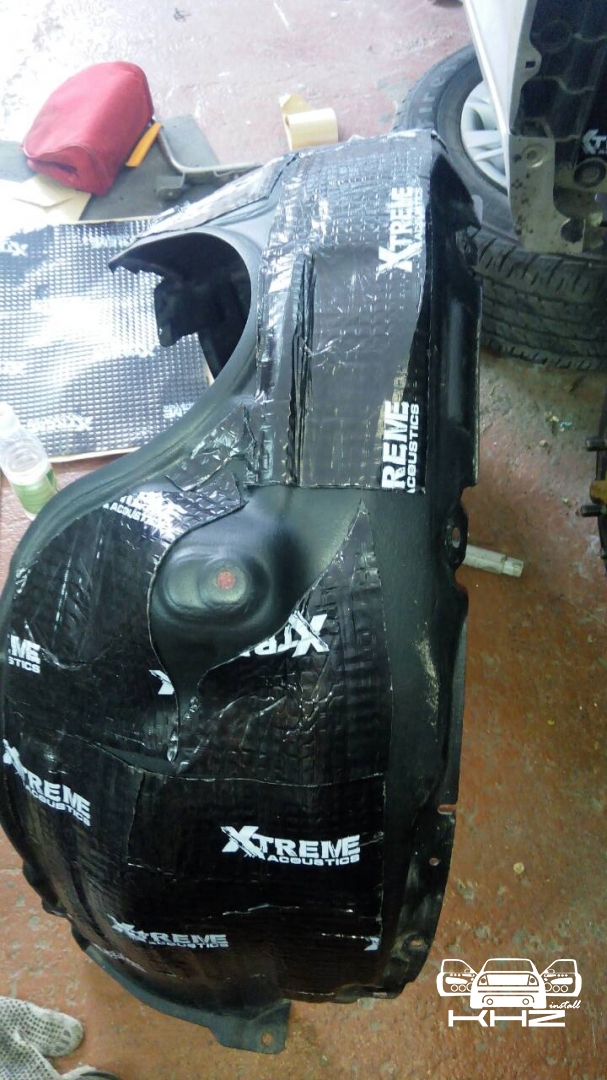 А також ми знімаємо підкрилки і колеса, миємо і вклеюємо віброізоляцію Acoustics Extreme, яка має найкращу клейову основу, і для такого завдання не замінна, задній підкрилок також планували закатати, але він ганчір'яний.