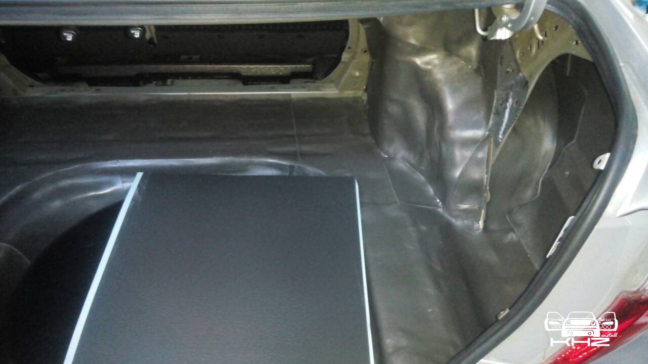 Так само всі елементи ручок карти були проклеєні антискрипом. Переходимо до багажника, багажник не маленький в даному автомобілі і вимагає довгих годин роботи. У нас було так, а стало так: