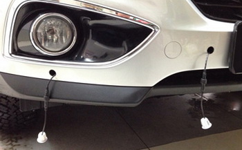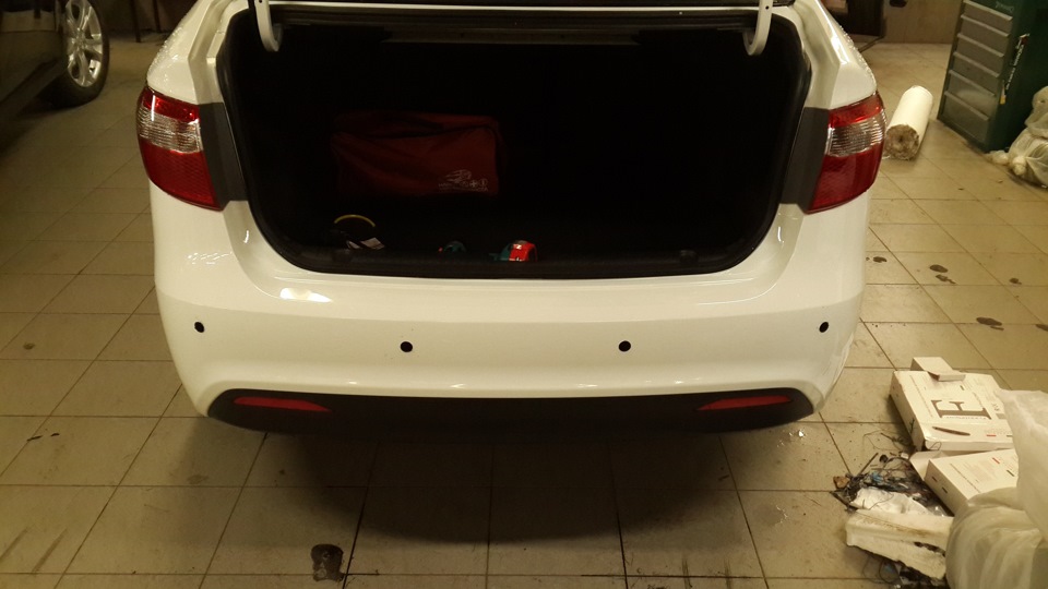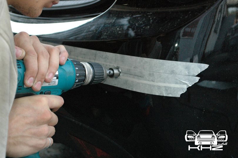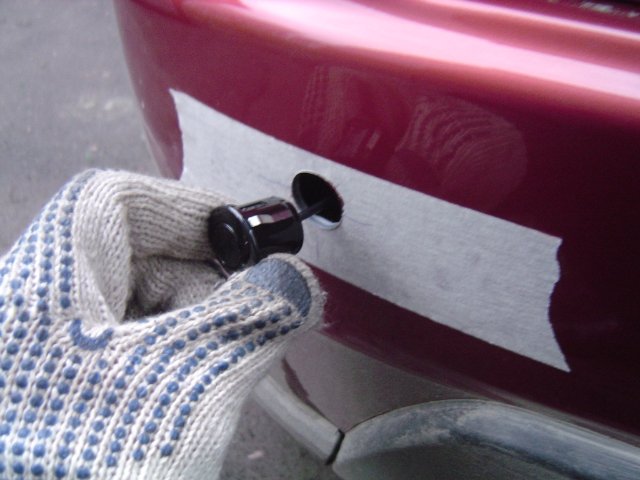 Встановлення парктроніка займає в середньому годин 5 часу. Оскільки в деяких випадках, коли під бампер немає доступу, потрібно буде знімати бампер, робити дірки під датчики парктроніка, підключати і тільки потім ставити бампер на місце. Як же все таки він встановлюється? Спочатку ми в місцях прорізання бампера заклеюємо його малярським скотчем, щоб уникнути поганих наслідків у вигляді фарби, що луснула, або злущування ґрунтовки і лаку. Потім ми беремо спеціальне свердло насадку, яка присутня в більшості комплектів парктроніків. І вирізаємо дірки за попередньою розміткою, яку потрібно зробити, щоб парктроніки стали рівно!