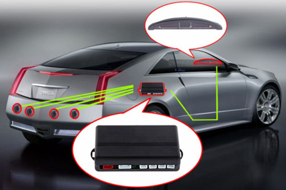 Встановлення парктроніка можливе як ззаду, так і спереду, задній парктронік вмикатиметься під час увімкнення задньої передачі, а передній вмикатиметься після вимкнення заднього автоматично і працюватиме упродовж 30-40 сек. або ж за вашим бажанням установник може встановити вам кнопку, за допомогою якої ви зможете вмикати й вимикати передній парктронік у будь-який час. Стандартне встановлення парктроніка в задній бампер автомобіля: